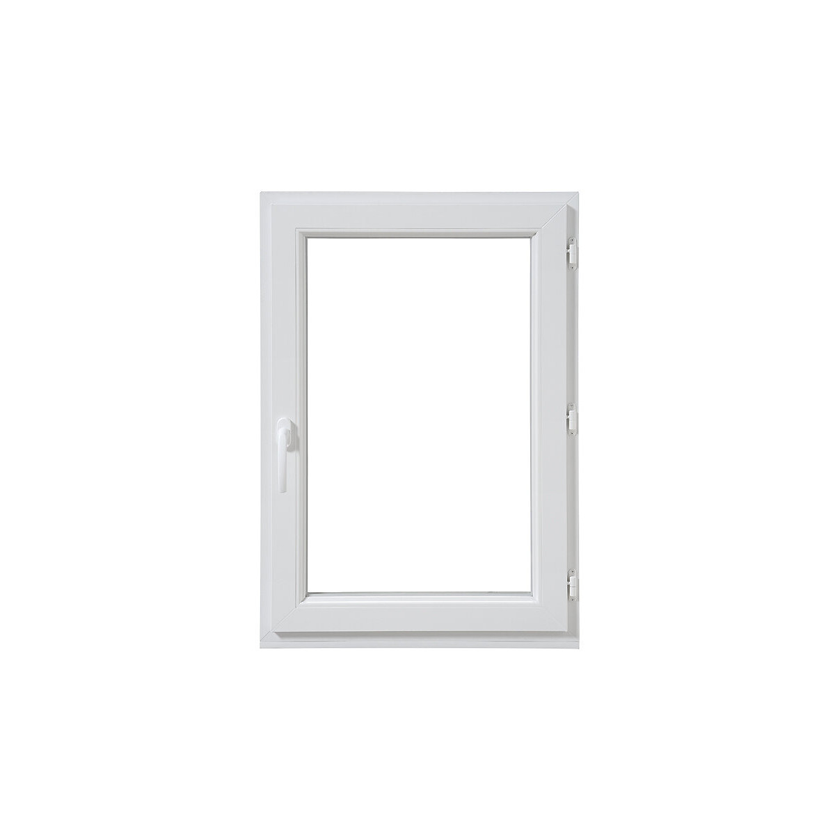 Menuiserie PVC NéoClassic Blanc hauteur tableau 750mm largeur tableau 800mm pose en applique intérieure dormant 5 sans aile avec appui rapporté de 108 Ouvrant à la française 1 vantail profil Z52 sens gauche tirant hauteur poignée 220mm vitrage 4/16/4 clair LowE Argon Warm Edge gris