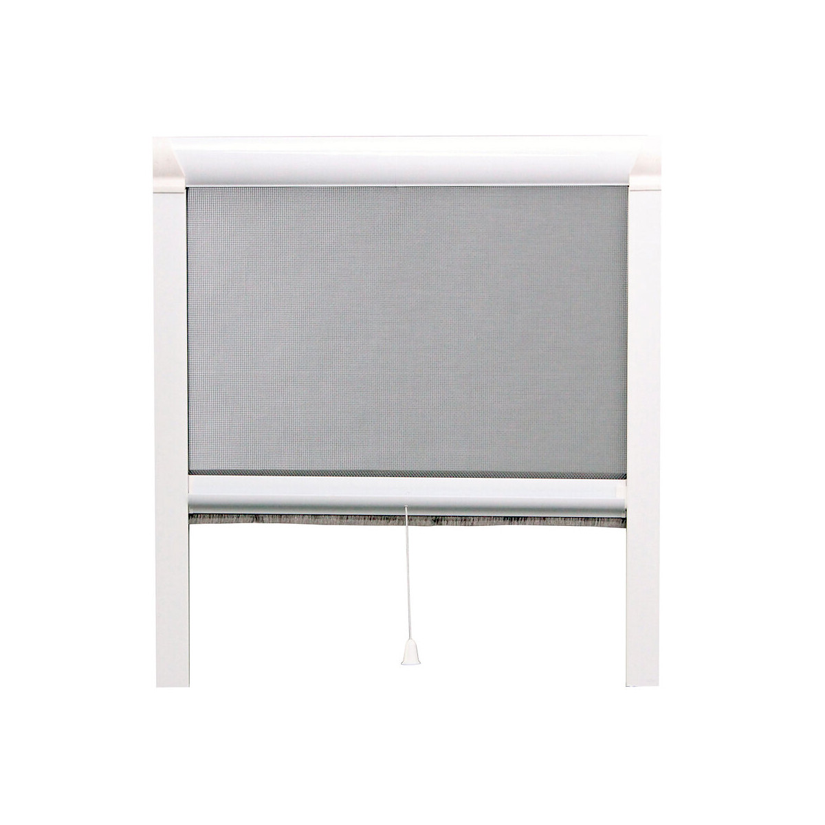Store moustiquaire enroulable en aluminium blanc, toile fibre de verre. Modèle vertical, manipulation de haut en bas, pour fenêtre. Recoupable en hauteur et largeur. Garantie 10 ans. Fabrication Française.