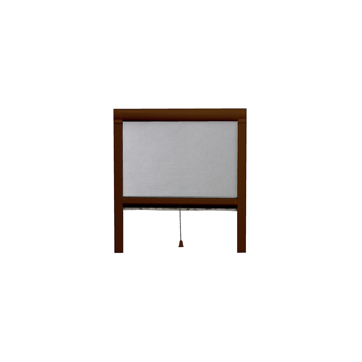Store moustiquaire enroulable en aluminium marron, toile fibre de verre. Modèle vertical, manipulation de haut en bas, pour fenêtre. Recoupable en hauteur et largeur. Garantie 10 ans. Fabrication Française.
