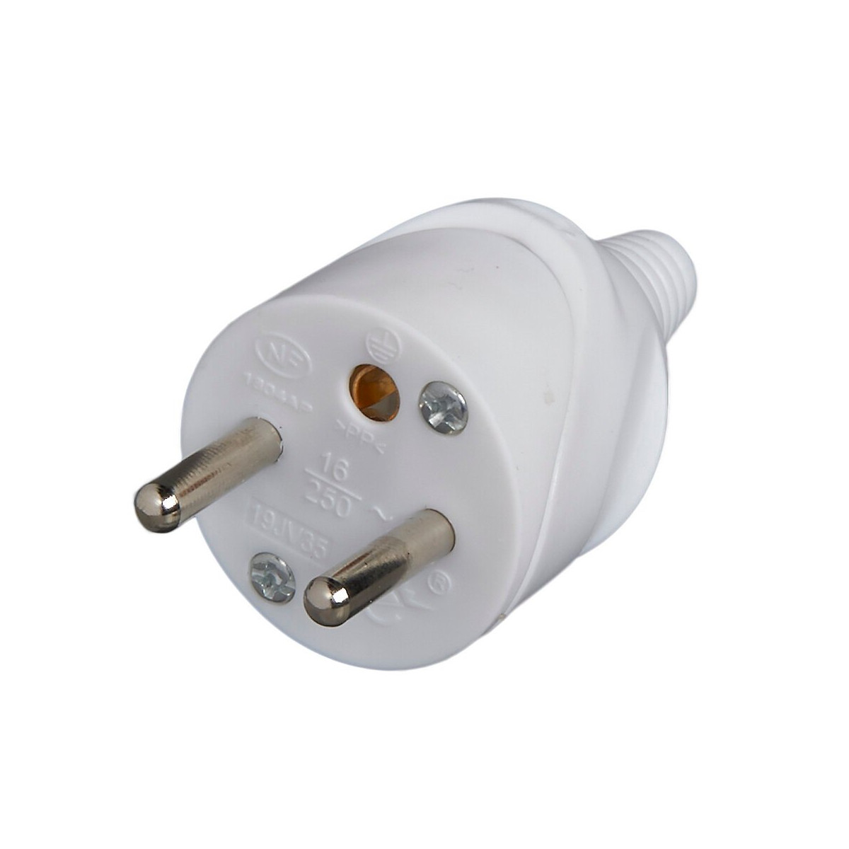Fiche électrique mâle 2 pôles + terre 16A Utilisation : créer une rallonge, réparer une fiche abimée Puissance maximale : 3680WAmpérage : 10 -16AIndice de protection : IP20Volet de protection : non Couleur : blancSpécifications techniques