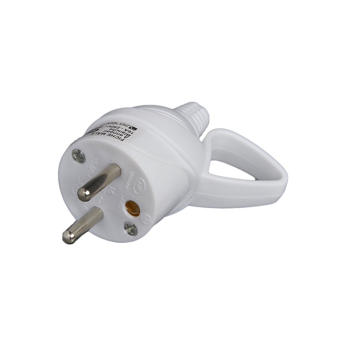 Fiche électrique mâle à anneau 2 pôles + terre 16A blanc