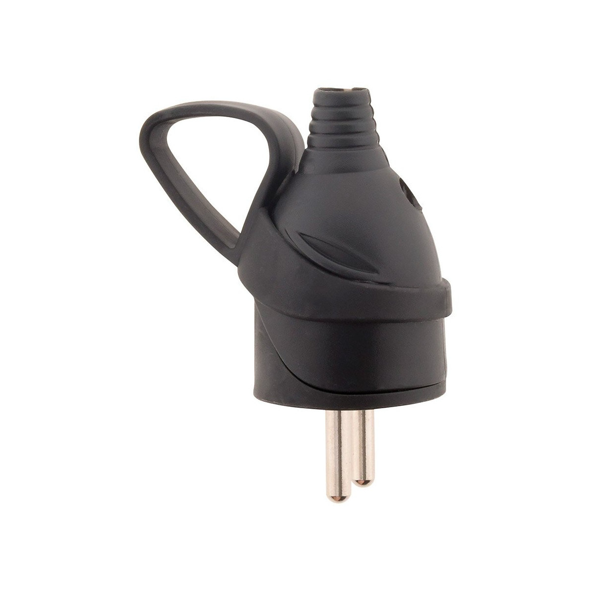 Cette fiche électrique mâle 2P+T 16A de couleur noire est pourvue d'un anneau. Elle convient pour câble électrique HO5VV-F 3G1/3G1,5mm². Puissance 3680W max sous 230V~. Certifié NF.
