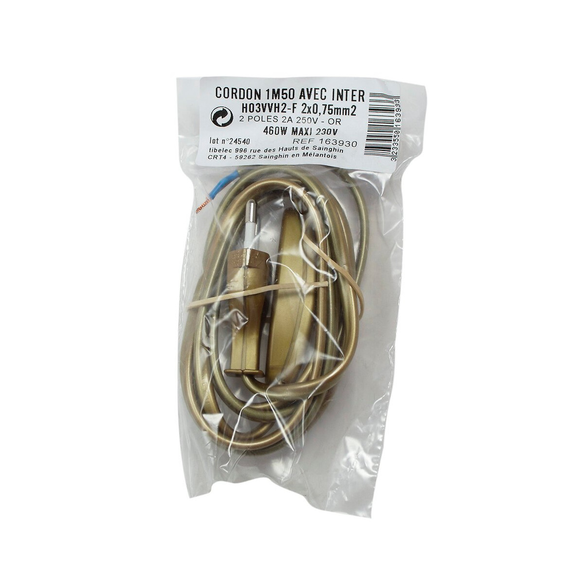 Cordon avec interrupteur et fiche longueur 1.5m or