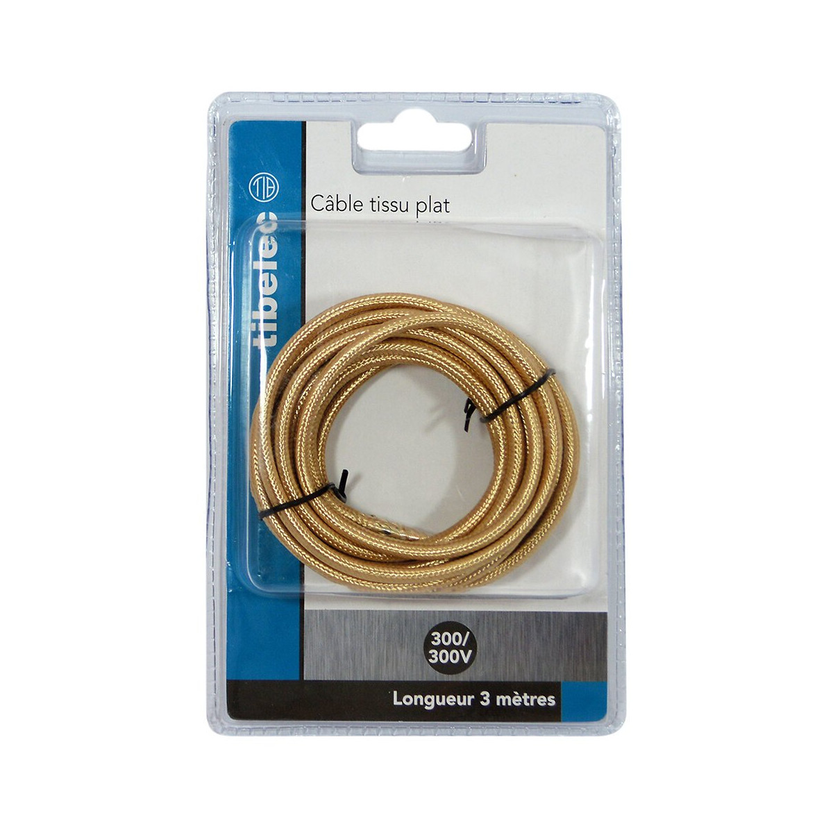 Fil rayonné plat de 3m or. Longueur : 3m. Type de câble : rayonné plat. Nombre de fils : 2. Section du fil : 0,75 mm². Coloris : or. S'’installe sur un luminaire pour l'alimentation électrique...Spécifications techniques