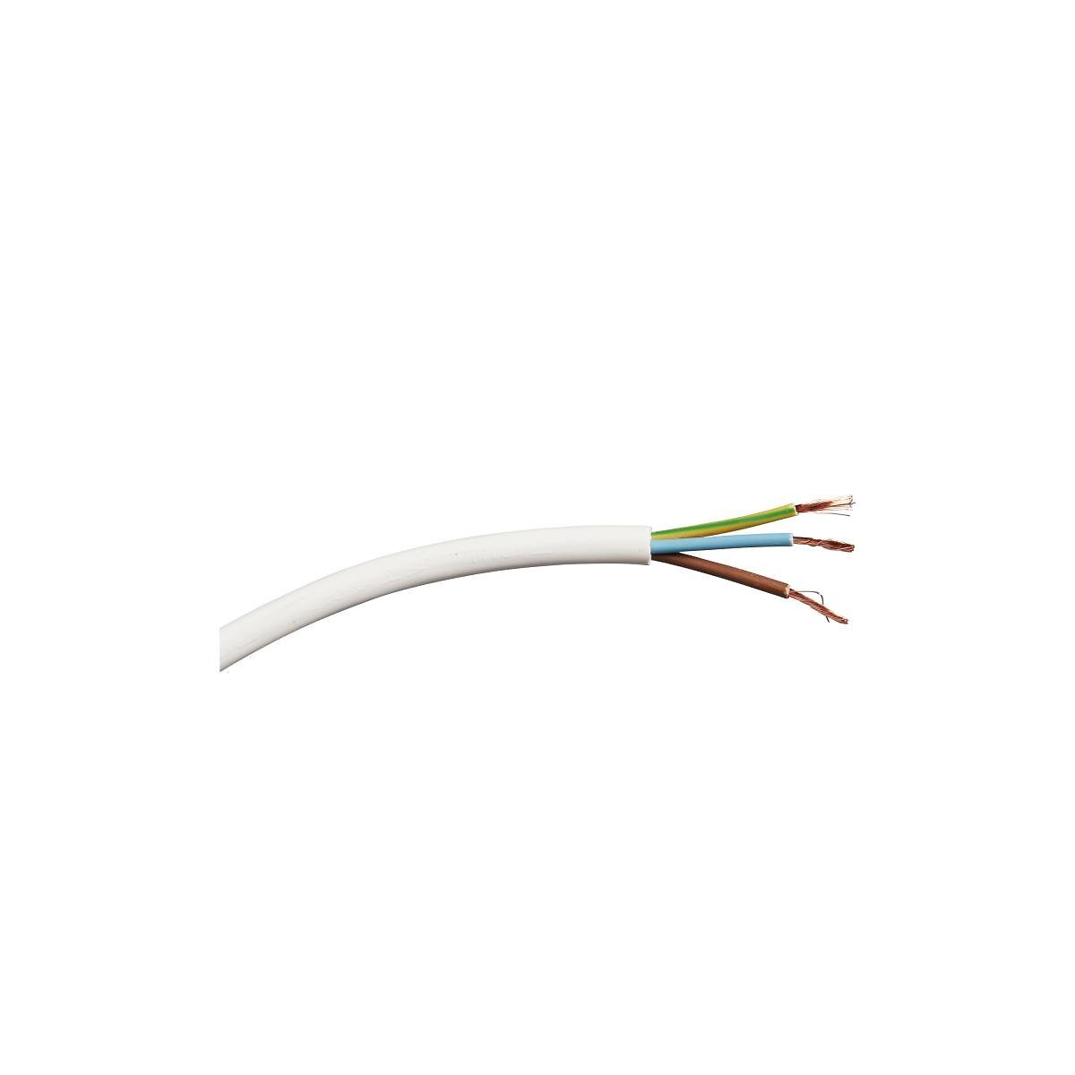 Ce câble électrique H05VV-F est adapté à l'électroménager et à l'électroportatif avec terre jusqu'à 3680 W. Les câbles H05VV-F sont prévus pour l'alimentation d'appareils électro-domestiques divers, mobiles ou semi-mobiles. Longueur : 10 m Type de la série : Harmonisée (H) Type tension : 300-500 V (05) Section du câble : 1 mm2 Enveloppe isolante : PVC (V) Gaine de protection : PVC (V) Type de câble : Souple de classe 5 (F) Nombre de conducteur : 3 Coloris : Blanc
