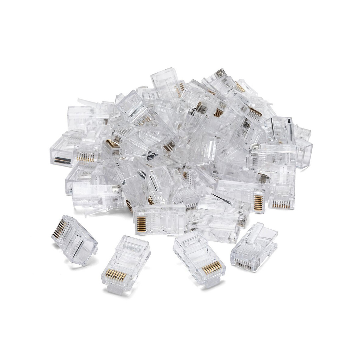 100 connecteurs RJ45 pour câbles rigides ou flexibles torsadés non blindés, compatibles avec des câbles réseau ronds ou plats de 24 à 26 AWG. Le connecteur Ethernet RJ45 est compatible avec les câbles Ethernet UTP Cat 5.Les contacts plaqués or offrent des performances fiables pour le réseau Ethernet et améliorent la stabilité du signal. De plus, la couleur est transparente, cela permet de mieux voir le voyant lumineux.Les connecteurs peuvent être utilisés à divers endroits: à la maison, au bureau, à l'école, etc. ... Idéal pour la construction de câbles réseau de longueur personnalisée.Les connecteurs plaqués or résistent à la corrosion, améliorent les performances du signal.Spécifications techniques