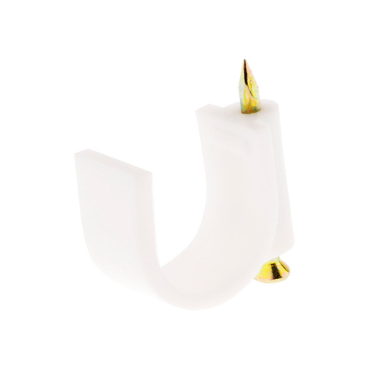 Lot de 20 attaches ou crochets de fixation blancs pour fil de diamètre 12mm avec clou spécial béton. Ces crochets permettent de fixer des câbles et autres gaines au mur. Certifié CE.