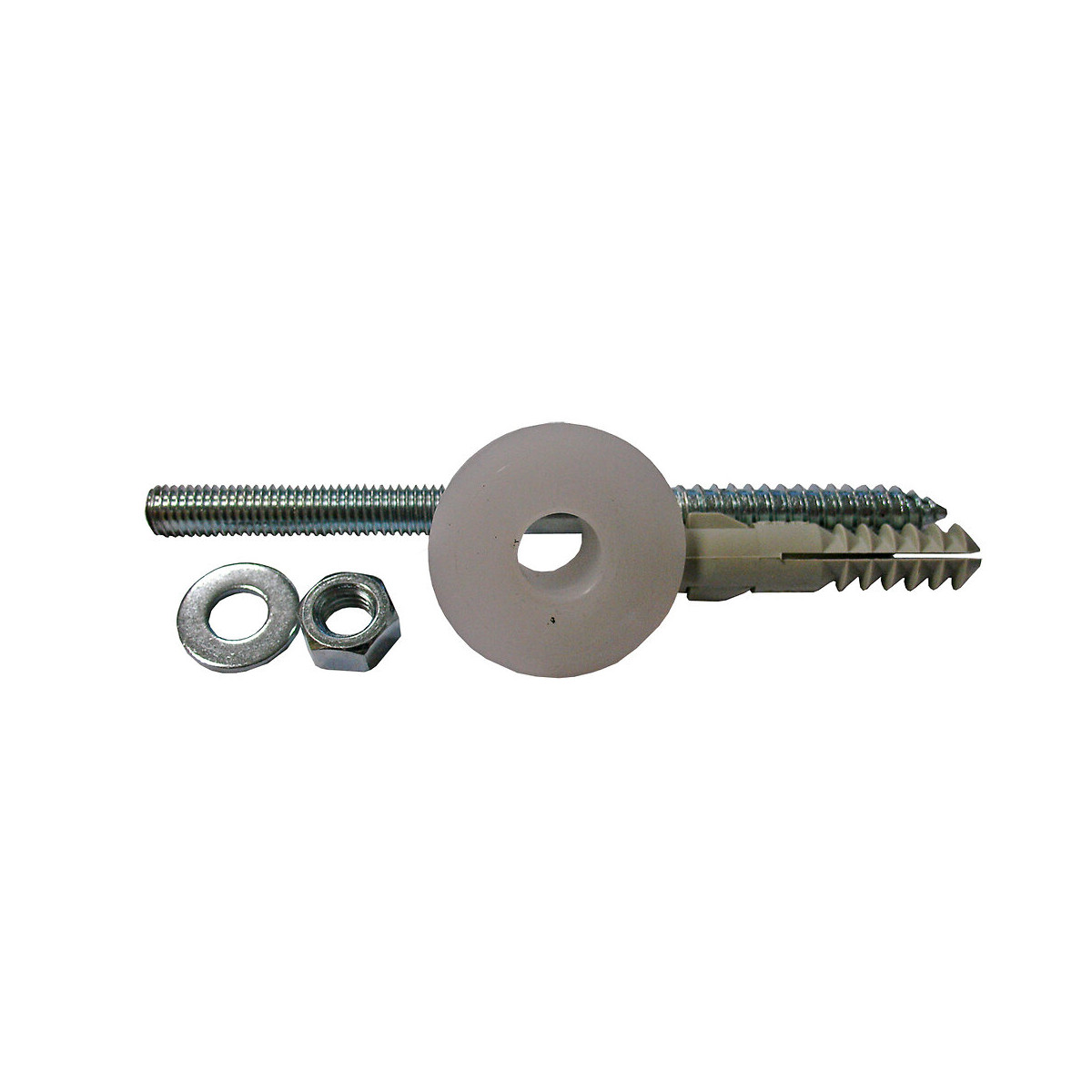 Kit de fixation sanitaire. Blister de 2 chevilles nylon 14x70mm + 2 vis bois/métal D10mm Kit de fixation sanitaire composé de 2 chevilles en nylon 14x70mm + 2 vis filetage bois/métal diamètre 10mm.