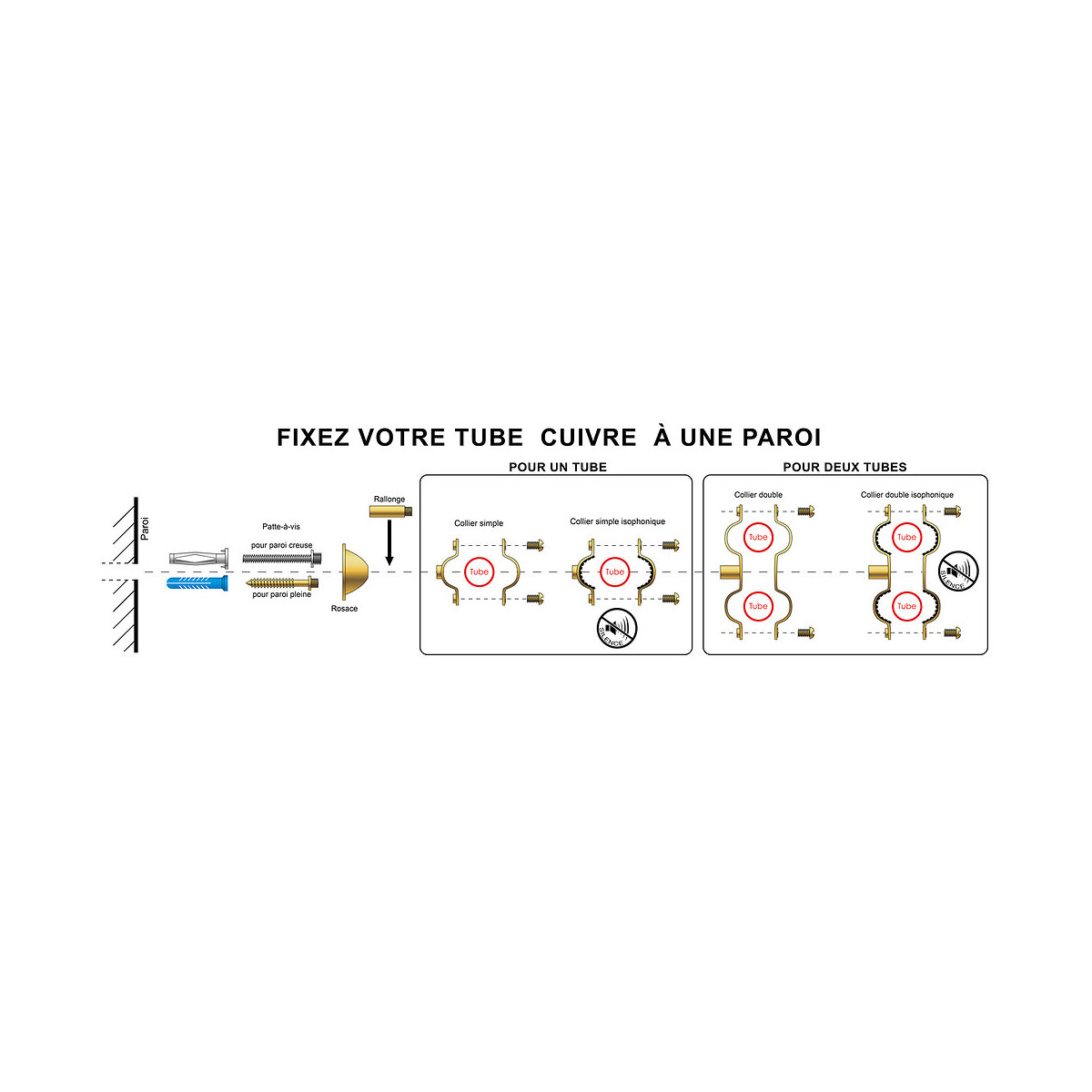 Permet l'installation de 2 tubes avec un seul collier Collier composé d'un support taraudé 7/150 pour utilisation avec une patte à vis