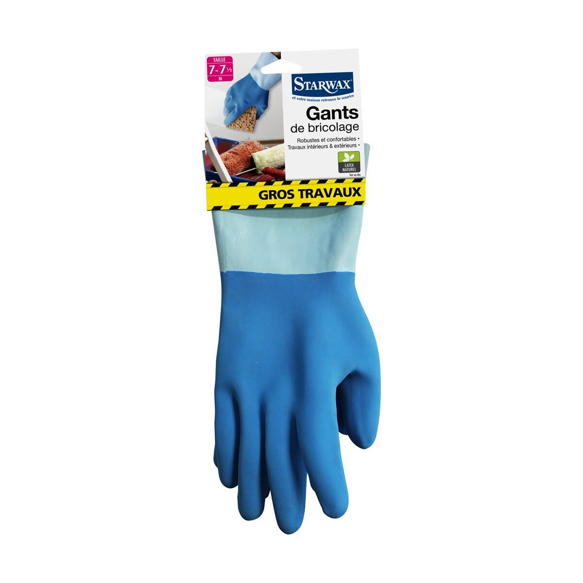 Recommandés pour les travaux de bricolage (lessivage des murs, mécanique…). Epais, étanches et très résistants. Confort d’utilisation : Ergonomiques (épousent bien la forme de la main et du poignet), Paume anti-glisse (le revêtement rugueux permet une meilleure prise en main des objets), intérieur en jersey de coton (limite la transpiration et garantit une bonne isolation thermique pour les travaux en extérieur) et Faciles à mettre et à enlever. Peuvent s’utiliser avec la Lessive sols et murs et les Décapants pour sols Starwax.Spécifications techniques