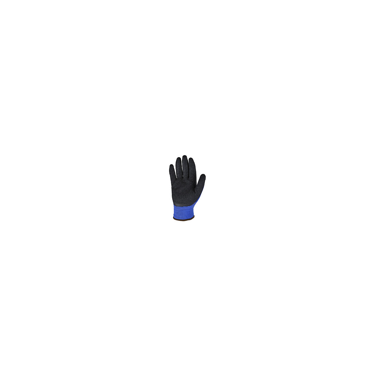 Gant tricoté 100% polyester spandex coloris bleu sans couture avec enduction en latex noir. Texture fine qui assure une grande souplesse pour un travail de précision. Dos aéré pour une bonne ventilation de la main et un plus grand confort d'utilisation. T9. Gants homologués suivant les normes EN 420:2003 + A1 : 2009 (exigences générales) et EN 388:2016 (risques mécaniques).