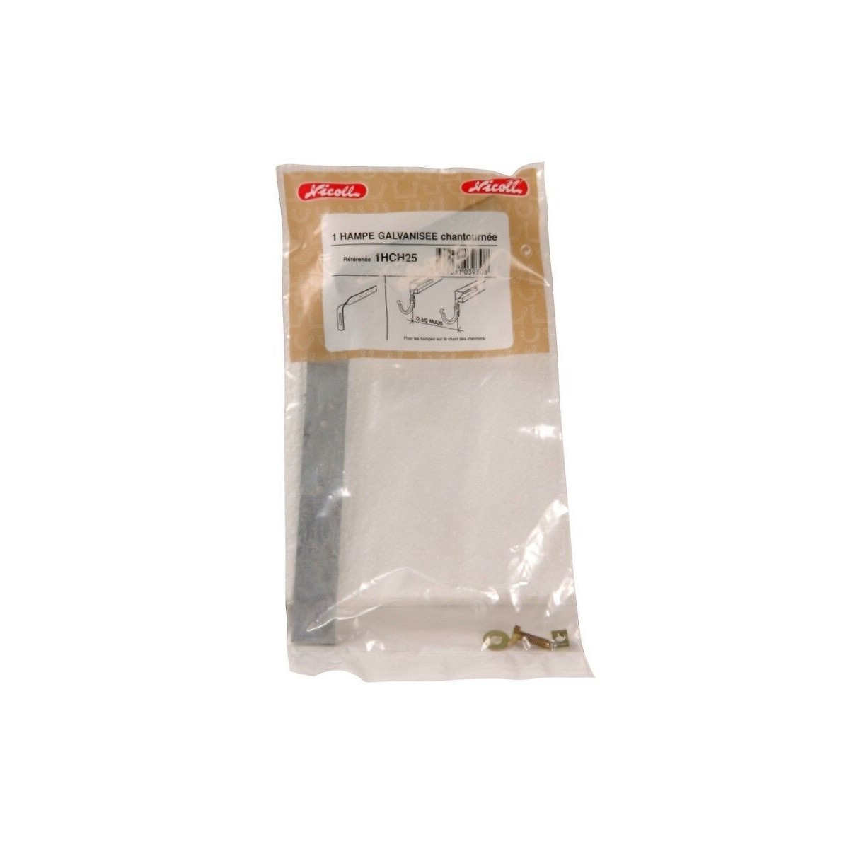 Hampe galvanisée Nicoll : chantournée sur chevron 225mm. Accessoire métallique galvanise à chaud conformément à la norme en1461 (épaisseur minimum de 55 microns). Peut être pose en conditions sévères (bord de mer ou industrie) et leur garantit une durée de vie minimale de 10 ans