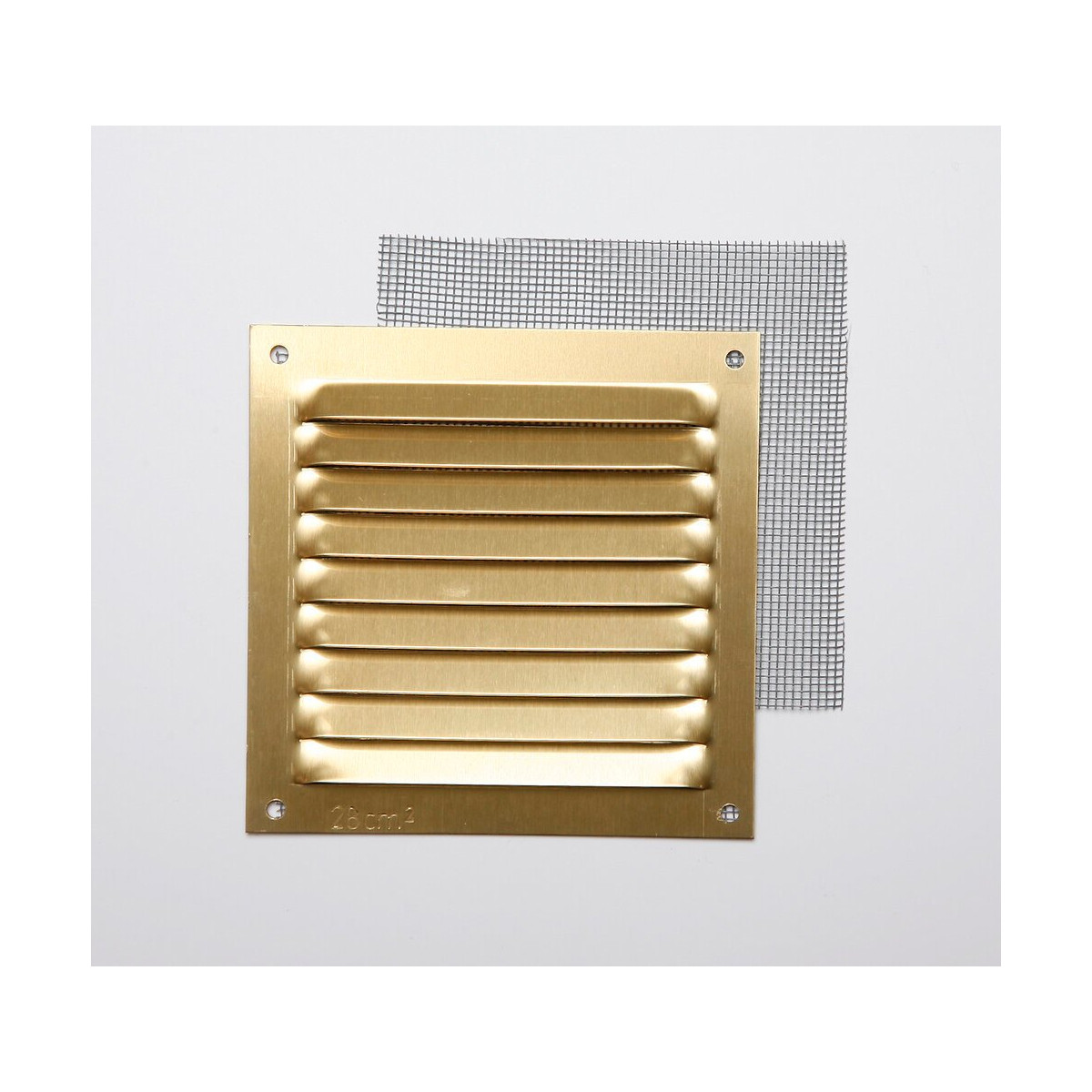 Grille d'aération aluminium or à visser avec moustiquaire. Dimensions : 10 x 10cm - Passage d'air 24cm2