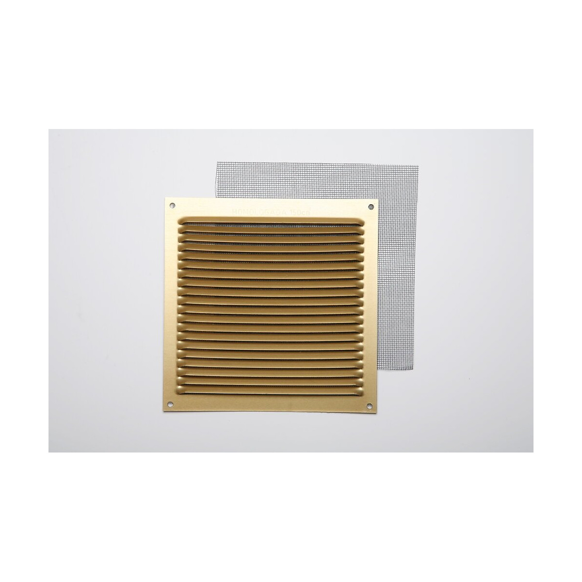 Grille d'aération aluminium or à visser avec moustiquaire. Dimensions : 17 x 17cm - Passage d'air 150cm2