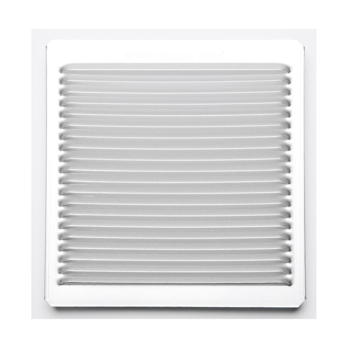 Grille d'aération aluminium mat à encastrer. Dimensions extérieures 17 x 16,5cm - Dimensions encastrement 14,2 x 15cm. Passage d'air 150cm2