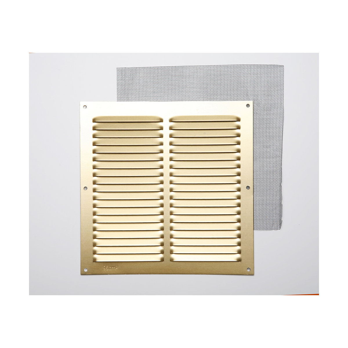 Grille d'aération aluminium or à visser avec moustiquaire. Dimensions : 20 x 20cm - Passage d'air 95cm2
