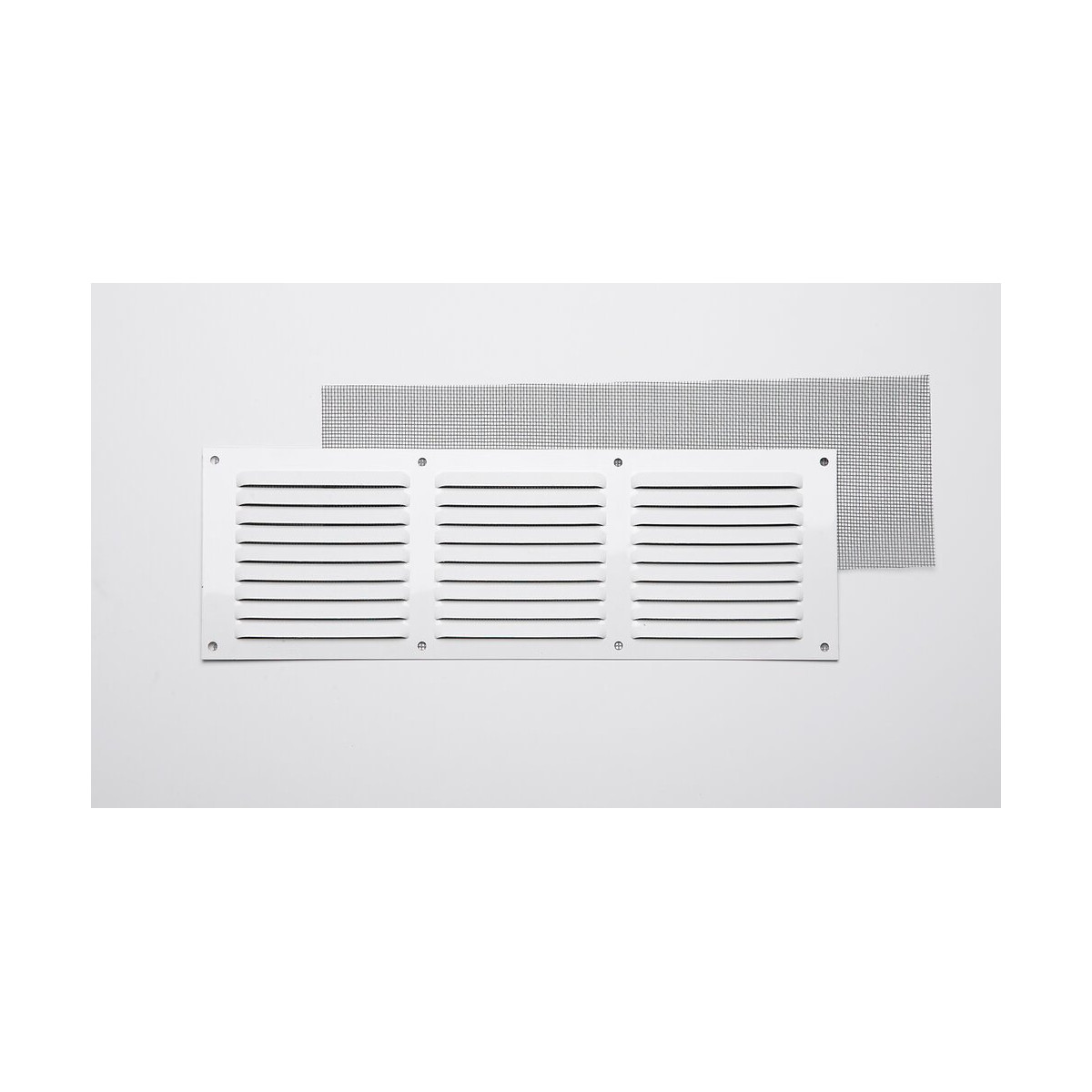 Grille d'aération aluminium blanc à visser avec moustiquaire. Dimensions : 30 x 10cm - Passage d'air 73cm2