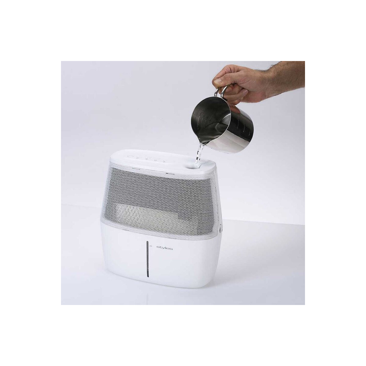 L'évaporation : une technologie ultra-silencieuse L'humidificateur d'air ALAZE possède une technologie dite "par évaporation" : l'eau contenue dans le réservoir de l'appareil passe à travers un filtre antibactérien, puis est diffusée dans l'air grâce à un ventilateur. Ainsi, les pièces de vie commes les chambres et le salon peuvent être humidifiées en consommant très peu d'énergie et en faisant très peu de bruit. Design & ergonomie ALAZE est un appareil qui a été pensé par Fabian Zimmerli, un designer suisse et qui s'intègre dans tous types d'intérieurs. Ses différentes fonctions et son panneau de contrôle est aisément sont aisément compréhensibles et simples d'utilisation. Un air sain sans prise de tête ALAZE propose plusieurs options qui font de lui un humidificateur très pratique : – il possède un système d'arrêt automatique en cas de réservoir vide et une LED rouge s'allume lorsque c'est le cas – son système de remplissage par le haut vous évite de le débrancher et de le transporter – son réservoir d'eau passe au lave-vaisselle Indicateur lumineux du taux d'humidité Parce qu'il a été pensé pour vous faciliter la vie, l'humidificateur d'air ALAZE possède un indicateur lumineux qui vous permet de savoir en temps réel si l'humidification de votre air intérieur est suffisante : – Vert : le taux d'humidité est optimal – Orange : le taux d'humidité est insuffisant et l'air est sec – Rouge : le réservoir d'eau est vide