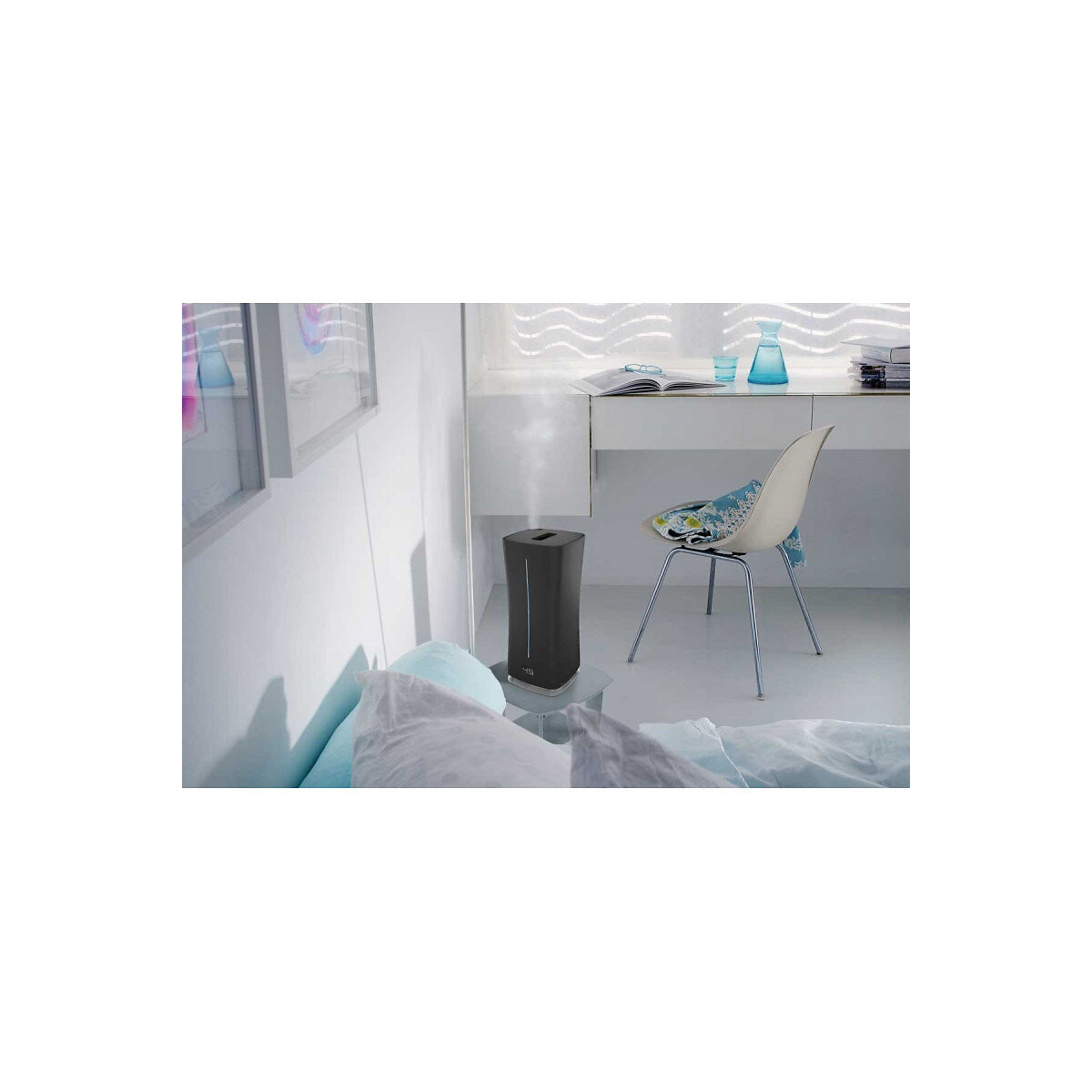 eva little Humidificateur d'air ultrasonique Pourquoi choisir l'humidificateur EVA Little Noir ? Silencieux On en oublierait presque le fonctionnement ; EVA Little humidifie les pièces en toute discrétion. Seule sa brume la trahit ! Humidification adaptative Le taux d'humidité souhaité est atteint et régulé automatiquement grâce à la technologie Adaptative Humidity™. Peu encombrant Ses 5 vitesses n'empêchent pas Eva Little de disposer d'un petit gabarit et d'une taille menue Multifonctionnel EVA Little Noir, à l'instar d'EVA, offre cinq niveaux d'humidification et un choix de taux d'humidité entre 30 % et 75 %. Elle dispose également d'un capteur externe d'humidité permettant une humidification précise et ajustable. Pendant la nuit, les LED peuvent être atténuées ou même totalement éteintes pour vous octroyer un sommeil paisible. Pour prolonger votre sensation de bien-être total, Eva Little diffuse le parfum de votre choix ! Discret et soigneux Tout comme sa grande soeur, EVA Little Noir humidifie de façon silencieuse tout espace mesurant jusqu'à 50m², en diffusant sa brume très haut dans l'air grâce à la technologie ultrasonique. Son capteur extérieur permet une humidification précise facilitant l'utilisation de l'appareil. EVA Little Noir, en mode auto, ajuste automatiquement le niveau d'humidification, afin d'atteindre et de maintenir sans bruit et avec efficacité le taux d'humidité souhaité. Eva et Eva Little EVA Noir et Eva little Noir peuvent être positionnés à même le sol sans effet de condensation. La télécommande Remote Sensor ™ (uniquement sur EVA), équipée d'un capteur ultrasensible, lui permet de mesurer et de réguler automatiquement le taux d'hygrométrie, tout en silence. Martin Stadler, fondateur de Stadler Form https://youtu.be/XPkRnMbcyfY Design signé par Matti Walker Eva Little existe depuis 2018 Chic et élégant Eva Little Noir est un modèle unique grâce à son design moderne et sobre. Et pour un bien-être optimal, Eva Little Noir diffuse des huiles essentielles de votre choix grâce à son récipient d'huiles. Comment fonctionne l'humidification par ultrasons est le distributeur exclusif en France depuis 2008 de