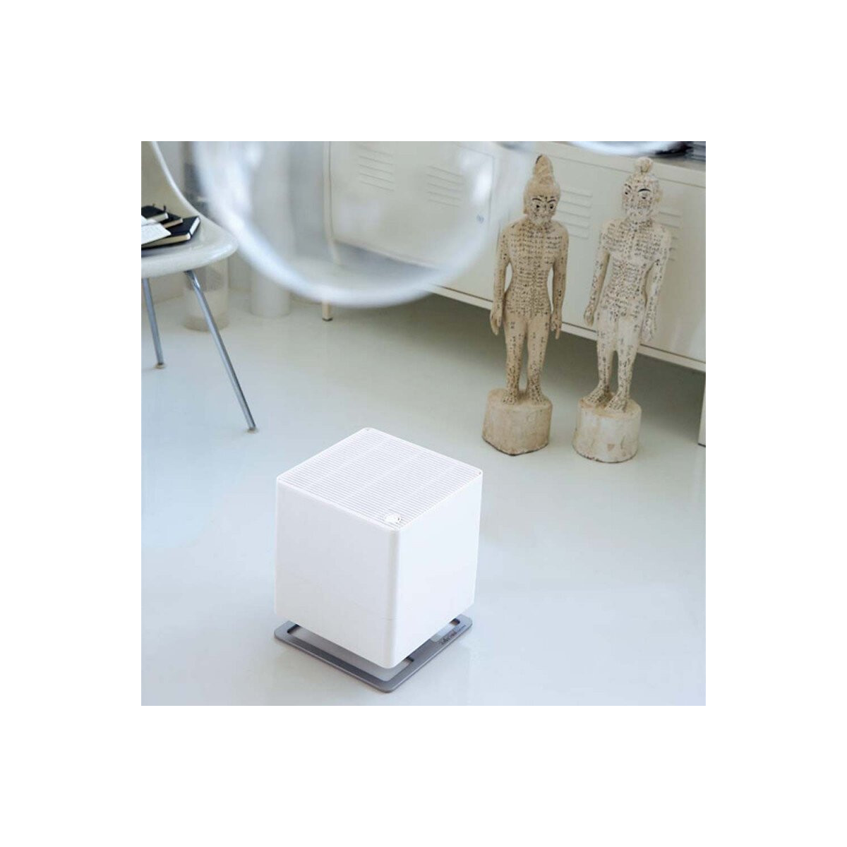 OSKAR Humidificateur par évaporation naturelle Pourquoi choisir l'humidificateur OSKAR blanc? Silencieux Sa conception, son ventilateur à grande pale tournant doucement en fait un appareil extrêmement silencieux Filtre l'air Son filtre épais a une action filtrante qu'un humidificateur ultrasonique traditionnel n'effectue pas Améliore le sommeil L'évaporation naturelle garantie une humidification confortable, particulièrement adapté à une chambre a coucher Humidifier En hiver, l'air intérieur de nos logements est souvent trop sec. Cela a des conséquences sur notre santé : muqueuses asséchées ou irritées. Les meubles en bois se fissurent, les instruments de musique se décaccordent, etc. Utiliser un humidificateur d'air permet de réduire ces effets et d'améliorer votre qualité de vie. Efficace et silencieux L'humidificateur d'air Oskar blanc par évaporation est prévu pour fonctionner dans des espaces jusqu'à 40 m². Oskar permet une humidification précise grâce à son hygrostat intégré et ses 2 vitesses d'humidification. Les pièces de vie (chambre, chambre d'enfant, salon) peuvent être humidifiées en consommant le moins d'énergie possible, seulement 18W en vitesse maximale !Non seulement il travaille silencieusement, mais il dispose aussi d'un mode nocturne qui permet de réduire la lumière de ses LEDs de contrôle. Pratique Oskar est très sain, il filtre l'eau et l'air et permet donc une humidification naturellement saine !Il dispose d'un système d'arrêt automatique en cas de réservoir vide et d'une lampe qui éclaire l'eau pour contrôler son niveau.Oskar est aussi très facile à utiliser, une petite ouverture permet facilement de remplir le réservoir (y compris quand l'appareil fonctionne) et mettre les huiles essentielles. Martin Stadler, fondateur de Stadler Form https://youtu.be/qWGaI2CwX1c Design signé par Matti Walker Oskar existe depuis 2009 Design et qualité Outre sa consommation d'énergie très réduite, Oskar est un modèle unique grâce à son design moderne et sobre. Et pour un bien-être optimal, Oskar diffuse des huiles essentielles de votre choix grâce à son récipient d'huiles. Nous préconisons de changer les filtres tous les 2 mois. Comment fonctionne l'humidification par évaporation est le distributeur exclusif en France depuis 2008 de