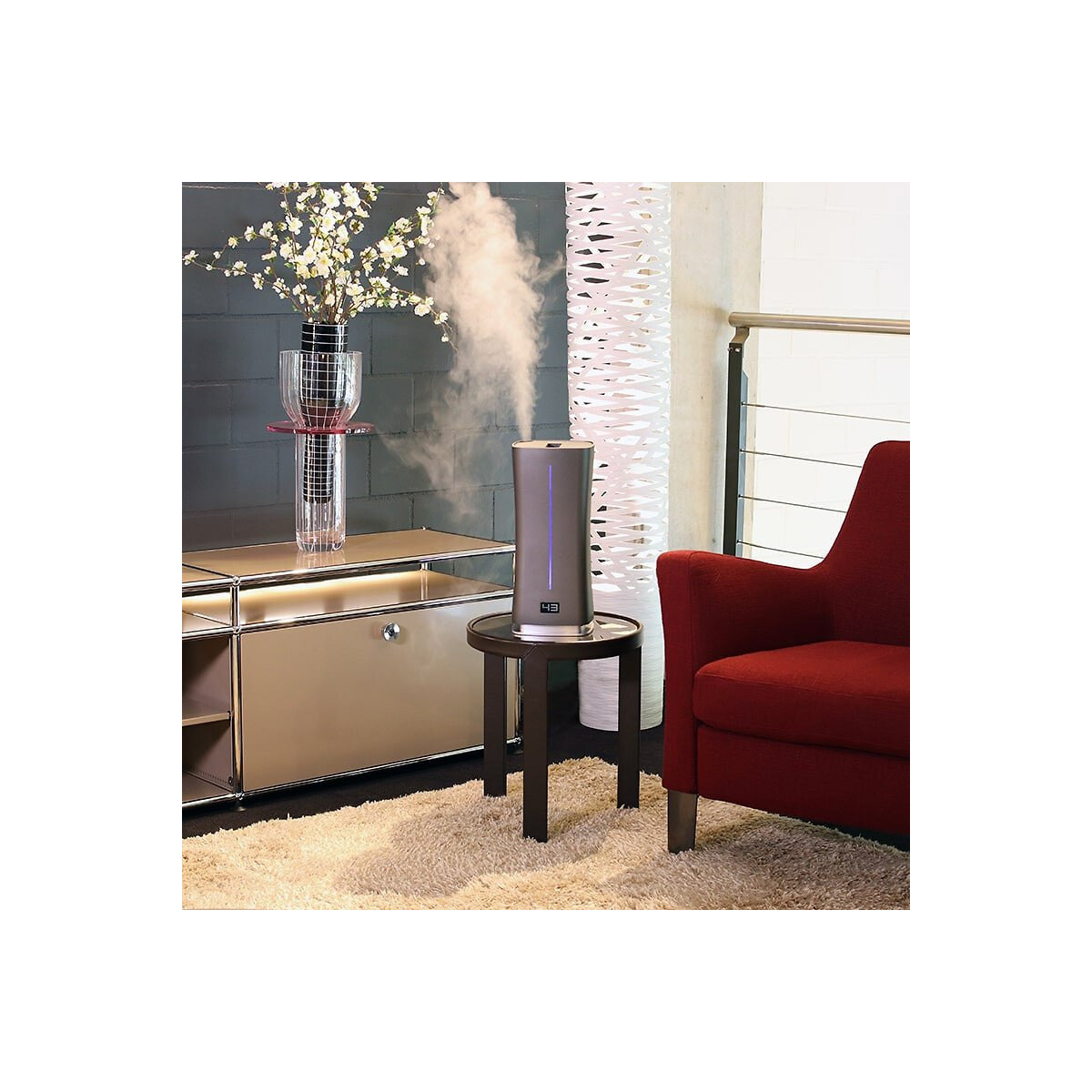 eva little Humidificateur d'air ultrasonique Pourquoi choisir l'humidificateur EVA Little Titanium ? Silencieux On en oublierait presque le fonctionnement ; EVA humidifie les pièces en toute discrétion. Seule sa brume la trahit ! Humidification adaptative Le taux d'humidité souhaité est atteint et régulé automatiquement grâce à la technologie Adaptative Humidity™. Peu encombrant Ses 5 vitesses n'empêchent pas Eva de disposer d'un petit gabarit et d'une taille menue Multifonctionnel EVA Little Titanium, à l'instar d'EVA, offre cinq niveaux d'humidification et un choix de taux d'humidité entre 30 % et 75 %. Elle dispose également d'un capteur externe d'humidité permettant une humidification précise et ajustable. Pendant la nuit, les LED peuvent être atténuées ou même totalement éteintes pour vous octroyer un sommeil paisible. Pour prolonger votre sensation de bien-être total, Eva Little diffuse le parfum de votre choix ! Discret et soigneux Tout comme sa grande soeur, EVA Little Titanium humidifie de façon silencieuse tout espace mesurant jusqu'à 50m², en diffusant sa brume très haut dans l'air grâce à la technologie ultrasonique. Son capteur extérieur permet une humidification précise facilitant l'utilisation de l'appareil. EVA Little Titanium, en mode auto, ajuste automatiquement le niveau d'humidification, afin d'atteindre et de maintenir sans bruit et avec efficacité le taux d'humidité souhaité. Eva et Eva Little EVA et Eva Little Titanium peuvent être positionnés à même le sol sans effet de condensation. La télécommande Remote Sensor ™ (uniquement sur EVA), équipée d'un capteur ultrasensible, lui permet de mesurer et de réguler automatiquement le taux d'hygrométrie, tout en silence. Martin Stadler, fondateur de Stadler Form https://youtu.be/XPkRnMbcyfY Design signé par Matti Walker Eva Little existe depuis 2018 Chic et élégant Eva Little Titanium est un modèle unique grâce à son design moderne et sobre. Et pour un bien-être optimal, Eva Little Titanium diffuse des huiles essentielles de votre choix grâce à son récipient d'huiles. Comment fonctionne l'humidification par ultrasons est le distributeur exclusif en France depuis 2008 de