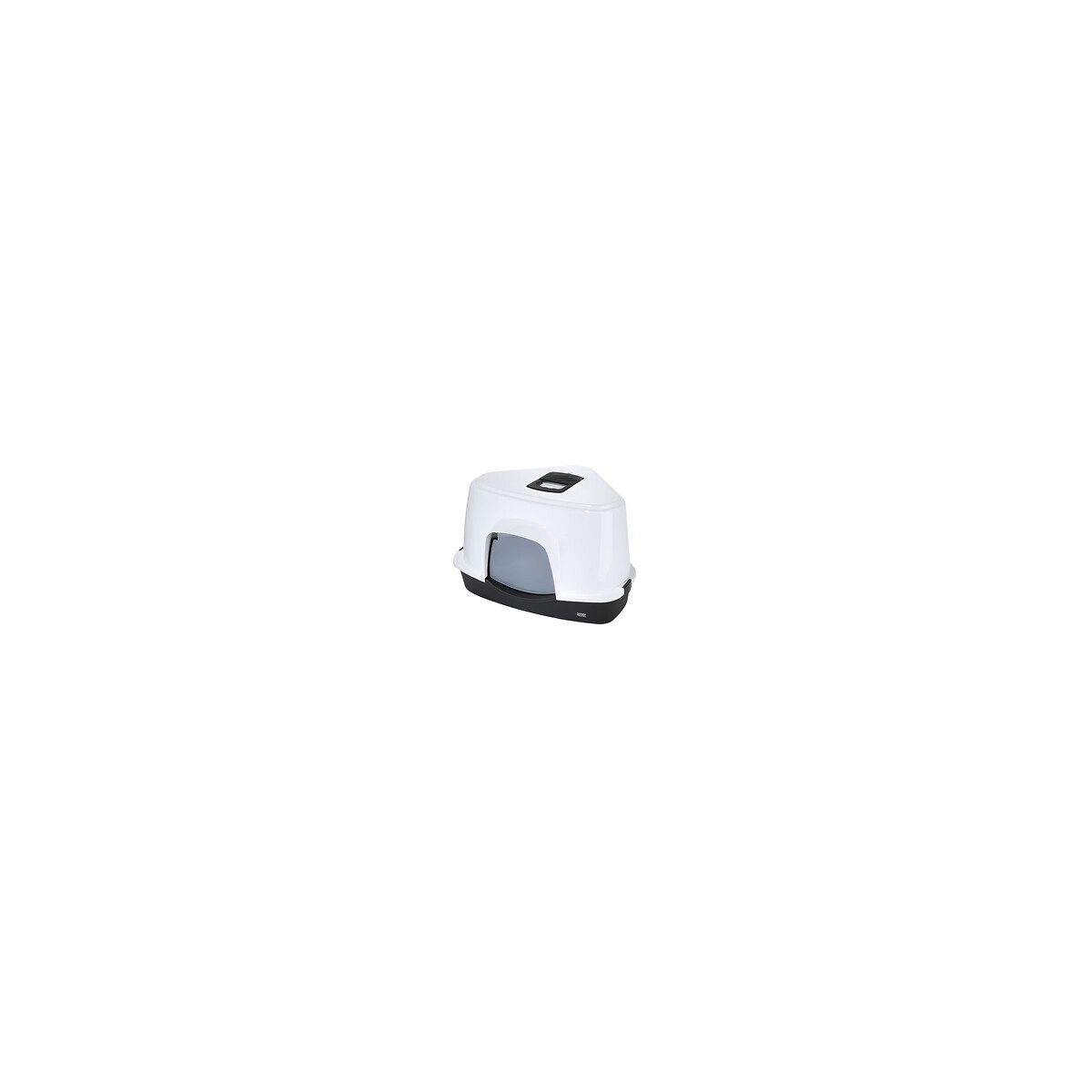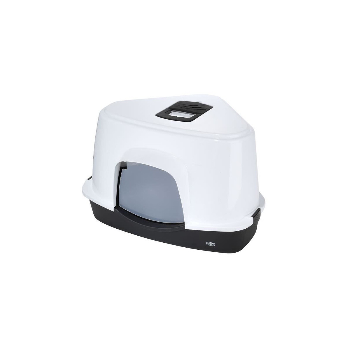 Le grand bac a litiere couvert de qualité Prism d''EBI dispose d''une grille munie d'un filtre au charbon actif qui élimine les mauvaises odeurs - Les pieds anti-dérapants empechent le bac a litiere de glisser - Son design innovant en coin permet de gagner de l''espace dans la maison.