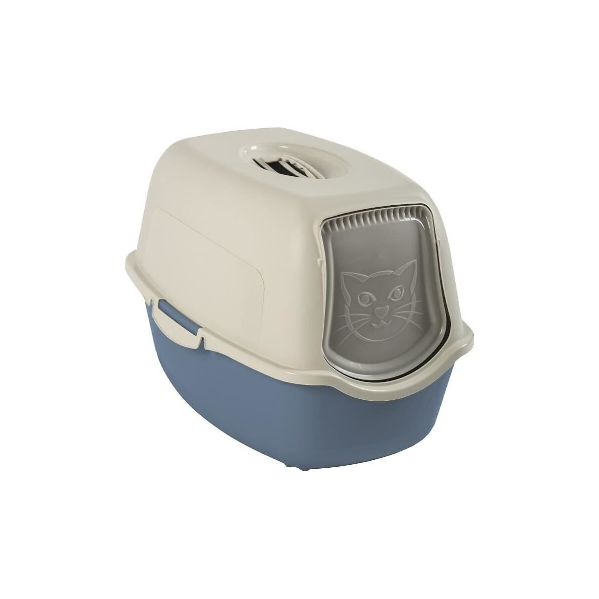 Maison de toilette classique pour chat avec porte d'entrée a battatn sur le devant.