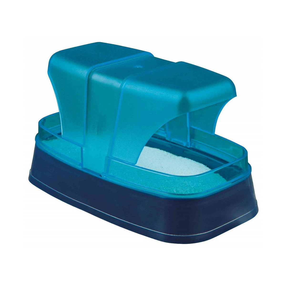 Bac à sable pour souris et hamsters. Dimensions: 17 × 10 × 10 cm par ex.: hamsters, souris Hauteur: 10 cm Coloris: bleu foncé/turquoise Bac à sable en plastique, pour souris et hamsters. pour le soin des griffes et du corps. pour un pelage doux. crée un environnement accueillant pour l animal. Dimensions: 17 × 10 × 10 cm. Hauteur: 10 cm Coloris: bleu foncé/turquoise livré sans sable. Photo non contractuelle, car il y a plusieurs vendeurs sur une même fiche produit.