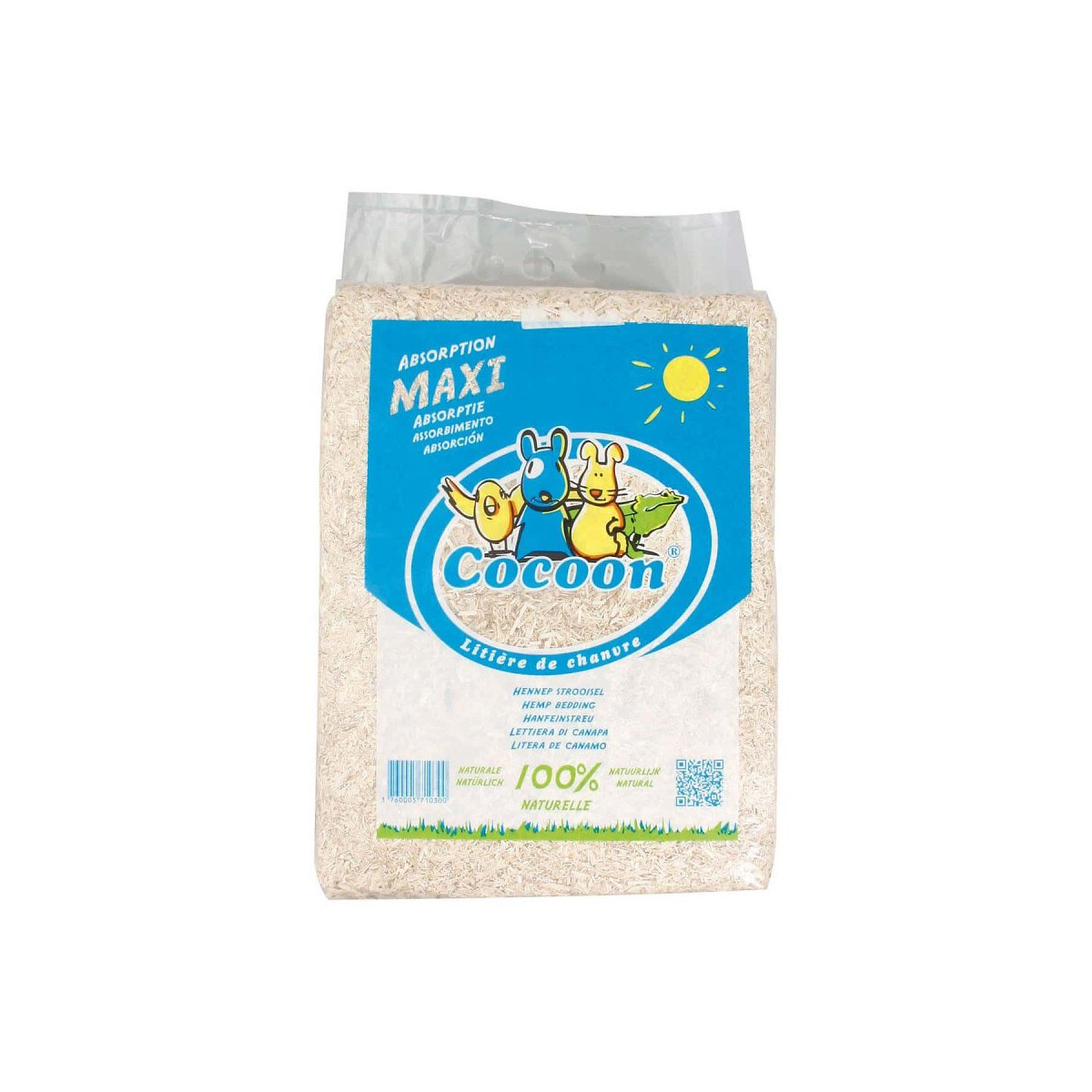 Litières de chanvre 10 kg compressé soit 100 L pour rongeur - Cocoon, garanti d'origine végétale, est issu de la transformation mécanique du chanvre industriel dont la culture en Champagne ne nécessite ni herbicide, ni insecticide, ni fongicide. Cocoon est donc 100% naturel et biodégradable. Dépoussière, sans particule toxique, Cocoon est particulièrement recommandé pour nos petits animaux de compagnie, notamment ceux fragiles au niveau respiratoire. Très absorbant, retient jusqu'à 3,7 fois son poids en liquide. Cocoon reste sec en surface, donc ne colle pas aux pattes de nos petits compagnons et assure une rétention des odeurs optimales. Litières de chanvre 10 kg compressé soit 100 L pour rongeur Cocoon, garanti d'origine végétale, est issu de la transformation mécanique du chanvre industriel dont la culture en Champagne ne nécessite ni herbicide, ni insecticide, ni fongicide. Cocoon est donc 100% naturel et biodégradable. Dépoussière, sans particule toxique, Cocoon est particulièrement recommandé pour nos petits animaux de compagnie, notamment ceux fragiles au niveau respiratoire. Très absorbant, retient jusqu'à 3,7 fois son poids en liquide. Cocoon reste sec en surface, donc ne colle pas aux pattes de nos petits compagnons et assure une rétention des odeurs optimales. Proposé en paillettes souples, Cocoon joue également un rôle d'isolant thermique pour un confort maximal. Photo non contractuelle, car il y a plusieurs vendeurs sur une même fiche produit.