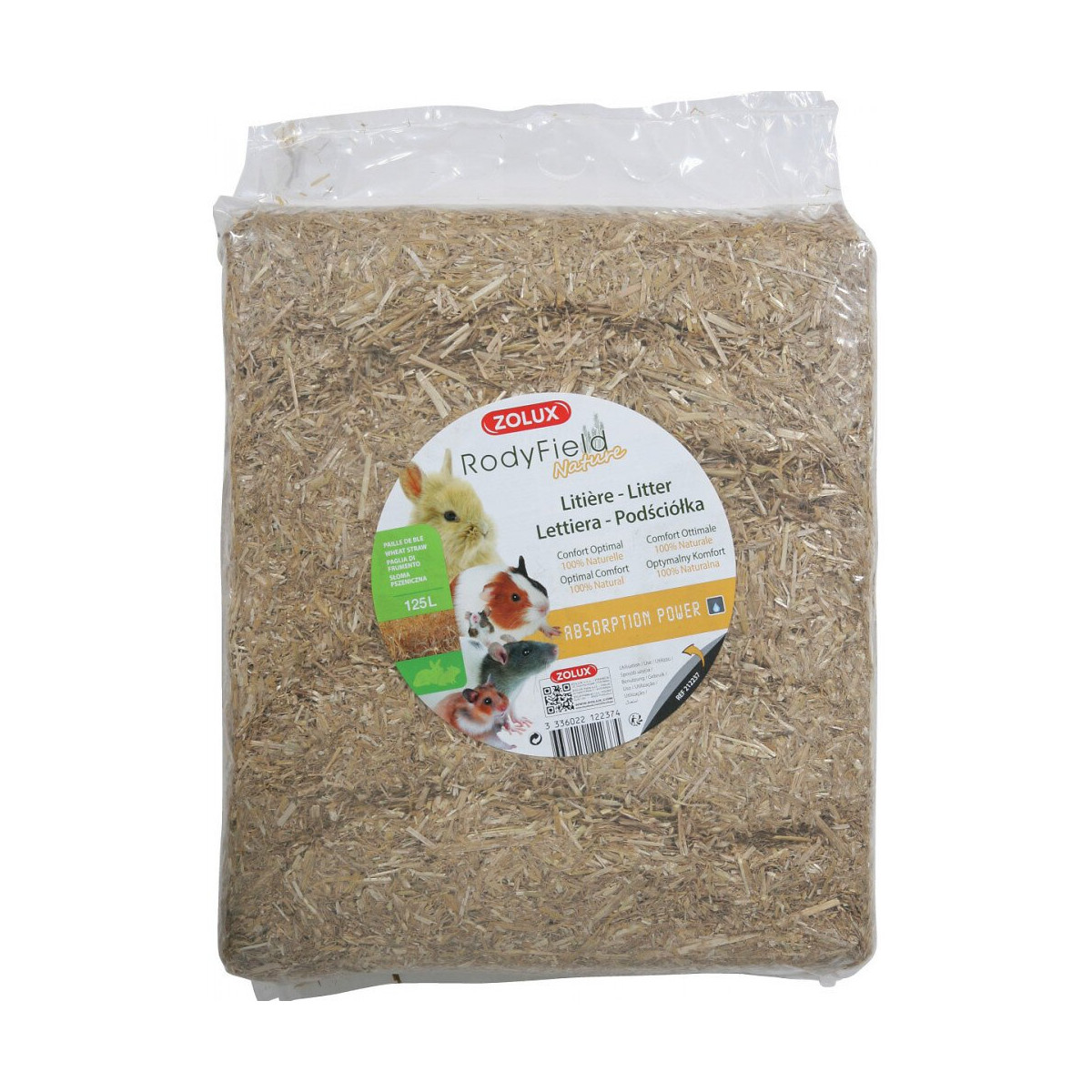 Litière Rodyfield nature 125 Litres Litière pour petits mammifères. Matériau végétal 100% naturel, biodégradable et compostable, la paille de blé constitue une litière confortable par sa souplesse et son pouvoir isolant thermique. Elle peut également être utilisée à l'intérieur des clapiers et des pondoirs pour la nidification ou comme sur-litière, combinée avec un autre matériau à très fort pouvoir absorbant. Utilisation : Verser une couche de 2 à 3 cm de litière dans le bac de la cage. Remplacer lorsque liquides et odeurs ne sont plus absorbés. Changer la litière aussi souvent que nécessaire pour maintenir l'animal au sec. Composition: Blé. Litière Rodyfield nature 125 Litres Litière pour petits mammifères. Matériau végétal 100% naturel, biodégradable et compostable, la paille de blé constitue une litière confortable par sa souplesse et son pouvoir isolant thermique. Elle peut également être utilisée à l'intérieur des clapiers et des pondoirs pour la nidification ou comme sur-litière, combinée avec un autre matériau à très fort pouvoir absorbant. Utilisation : Verser une couche de 2 à 3 cm de litière dans le bac de la cage. Remplacer lorsque liquides et odeurs ne sont plus absorbés. Changer la litière aussi souvent que nécessaire pour maintenir l'animal au sec. Composition: Blé. Indice de Performance : 1 Correspond au volume de liquide absorbé par litre de matériau. Plus l'indice est élevé, plus la capacité d'absorption est importante, ce qui renforce l'hygiène de la cage, réduit l'humidité et les odeurs, et diminue les quantités de litière consommées. Exemple : Indice 1 = 0.11 de liquide absorbé par 1L de litière. Indice 20 = 2L de liquide absorbé par 1L de litière. Photo non contractuelle, car il y a plusieurs vendeurs sur une même fiche produit.