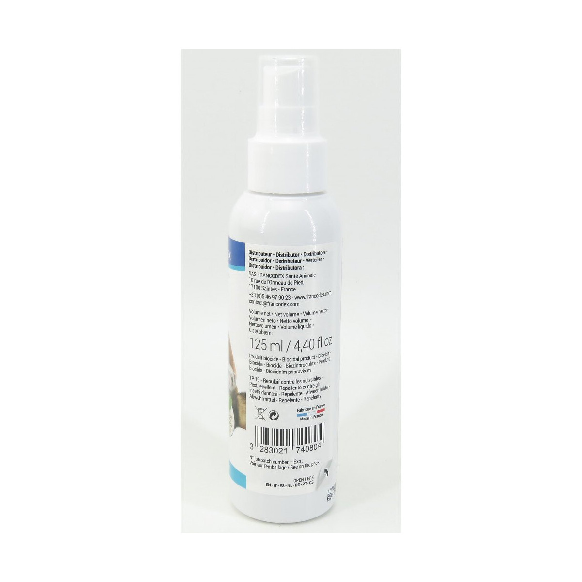 Lotion insectifuge. pour rongeur ,lapin, furet. flacon de 125 ml. LES + PRODUITS Margosa et géraniol : action insectifuge Sans rinçage Utilisation pratique. Lotion insectifuge. pour rongeur ,lapin, furet. flacon de 125 ml. LES + PRODUITS Margosa et géraniol : action insectifuge Sans rinçage Utilisation pratique. description: Formulée à base d'extraits de margosa et de géraniol, aux propriétés répulsives, la LOTION INSECTIFUGE FRANCODEX protège votre animal de toute infestation par des parasites. La formulation douce de cette lotion ne nécessite aucun rinçage. composition: Margosa extract (CAS N°84696-25-3) 0,5%, geraniol (CAS N°106-24-1) 0,01%. Mode d'emploi: Agiter le flacon avant utilisation. Vaporiser le produit sur un gant, une lingette ou un coton, puis l'appliquer sur le corps de façon uniforme. Eviter tout contact avec les yeux et les muqueuses. Pour une efficacité optimale, renouveler l'opération toutes les deux semaines. En cas de forte infestation, renouveler l'opération, en respectant un intervalle minimum de deux semaines entre chaque application, jusqu'à disparition des parasites. Un traitement de l'environnement est souvent nécessaire. Ne pas utiliser sur des animaux de moins de 3 mois. Ne pas utiliser durant la gestation ou la lactation. Ce produit n'est pas un médicament. Si les symptômes persistent, consulter un vétérinaire. Photo non contractuelle, car il y a plusieurs vendeurs sur une même fiche produit.
