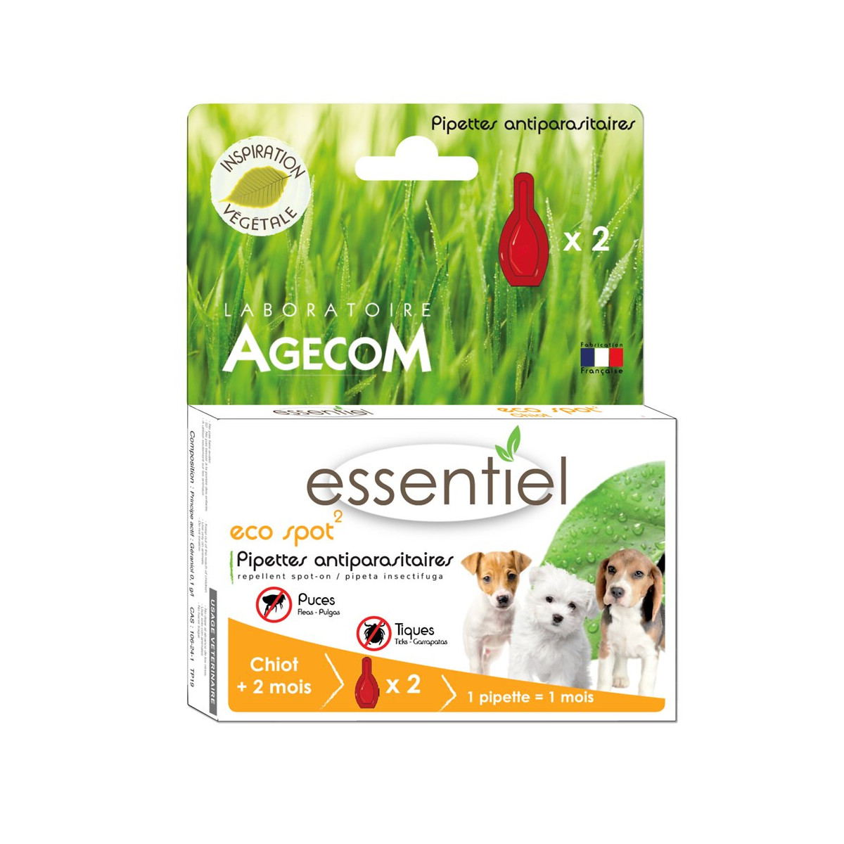 Pipette insectifuges à base d?un actif naturel, le Géraniol. Une méthode sûre et efficace pour contrôler les puces et les tiques. L?actif d?origine naturelle repousse les puces et les tiques plus de 4 semaines sans affecter l?odorat de votre chien. Chiot de plus de 2 mois : 2 pipettes de 1 ml.Spécifications techniques