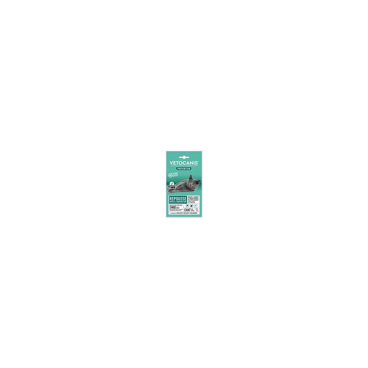 Ce collier antiparasitaire Vétocanis pour chat de plus de 9 mois permet de repousser les puces, les tiques et les moustiques.Spécifications techniques