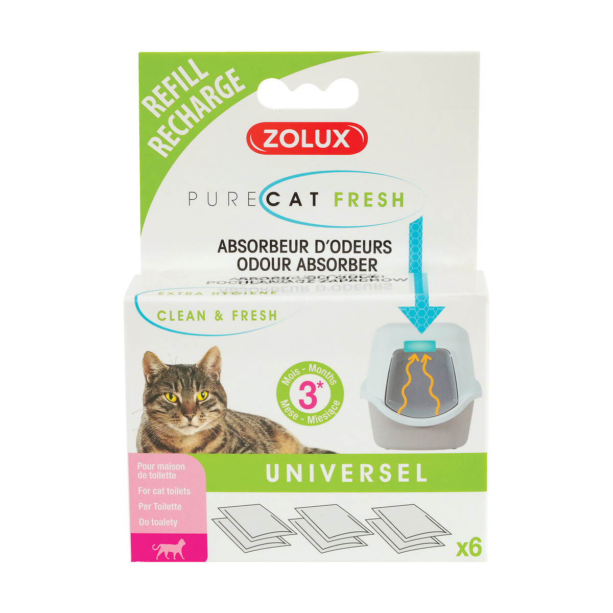 Après +/- 4 semaines, les granulés sont saturés et gonflés. Retirer le support situé à l’intérieur de votre maison de toilette. Remplacer les 2 sachets usagés par 2 nouveaux filtres. La recharge Pure Cat Fresh contient 6 sachets pour une efficacité jusqu’à 3 mois *sous réserve d’un entretien régulier de la maison de toilette et dès 24h d’utilisation.Spécifications techniques