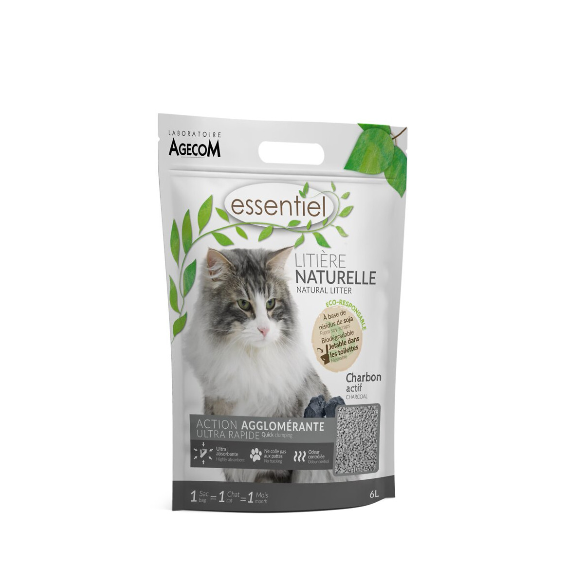 La Litière Naturelle Essentiel possède un excellent pouvoir d’agglomération : au contact des liquides, elle forme immédiatement de petits blocs compacts que vous pouvez retirer facilement chaque jour, gardant ainsi une litière entièrement propre. , Dépoussiérée et parfumée naturellement, la Litière Naturelle Essentiel ne colle pas aux pattes de votre chat et absorbe parfaitement les odeurs, pour votre confort et celui de votre compagnon. Une démarche ECO-RESPONSABLE La production de boisson au soja génère chaque année des centaines de milliers de tonnes de résidus de soja qui sont jetés dans les décharges. Les équipes Laboratoire Agecom ont eu l’idée d’exploiter ces déchets pour en faire une litière qui allie efficacité et préservation de l’environnement. Notre litière 100% biodégradable est jetable dans les toilettes sans risque pour la nature ou pour vos canalisations.Spécifications techniques
