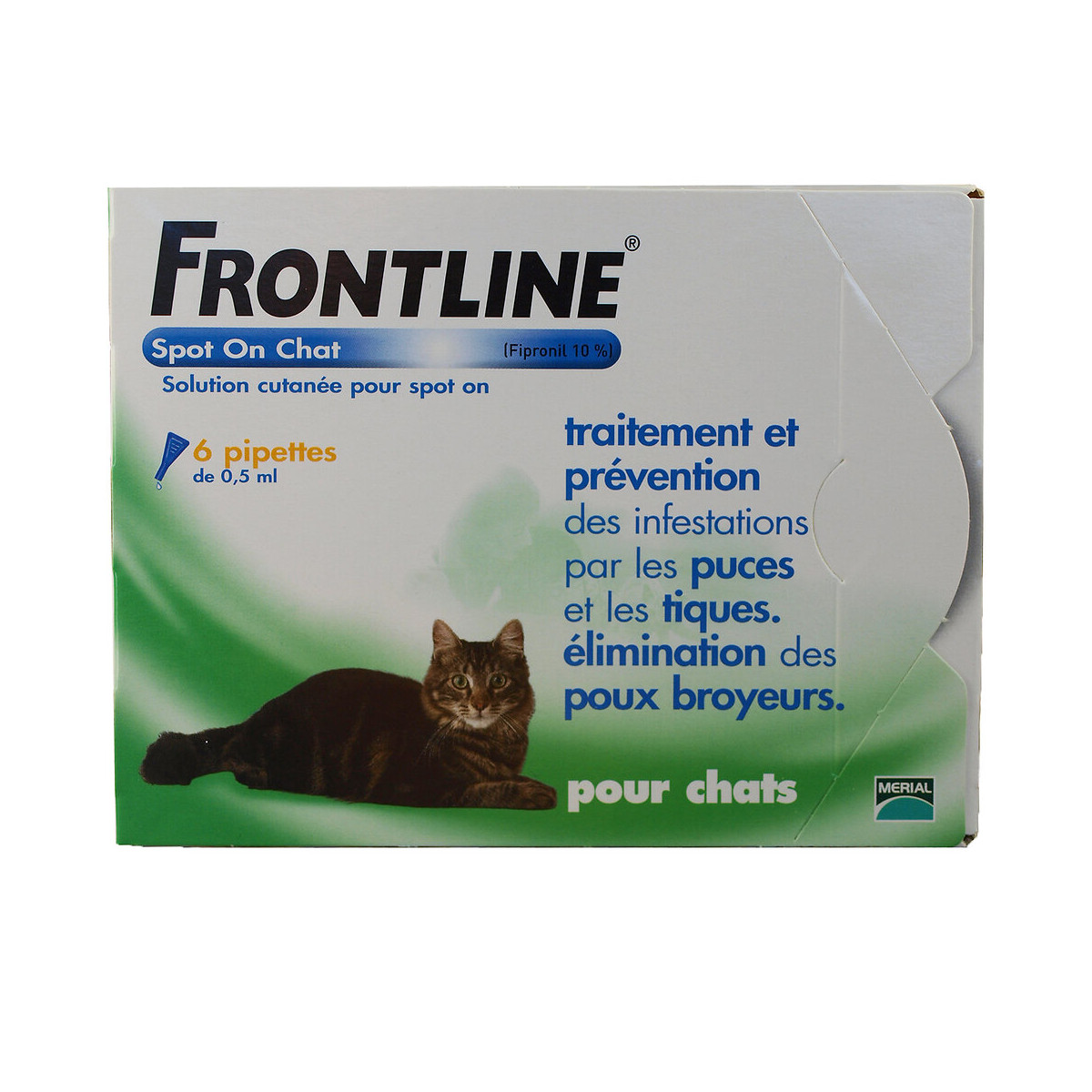 Antiparasitaire Spot-On classique, pour traiter et prévenir avec une solution simple et efficace. FRONTLINE Spot-On permet de lutter contre les parasites des chats. Il est efficace contre : - Les puces : FRONTLINE Spot-On tue les puces adultes dans le