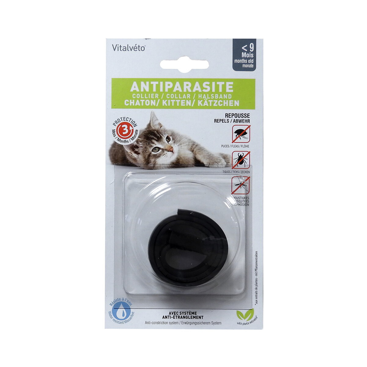 Repousse les puces, tiques et moustiques pendant environ 3 mois. Contient des extraits de Margosa et de Lavandin réputés pour leurs propriétés répulsives.Ce collier dégage une odeur agréable qui n'altère pas l'odorat de votre chaton et comporte un système anti-étranglement.Spécifications techniques