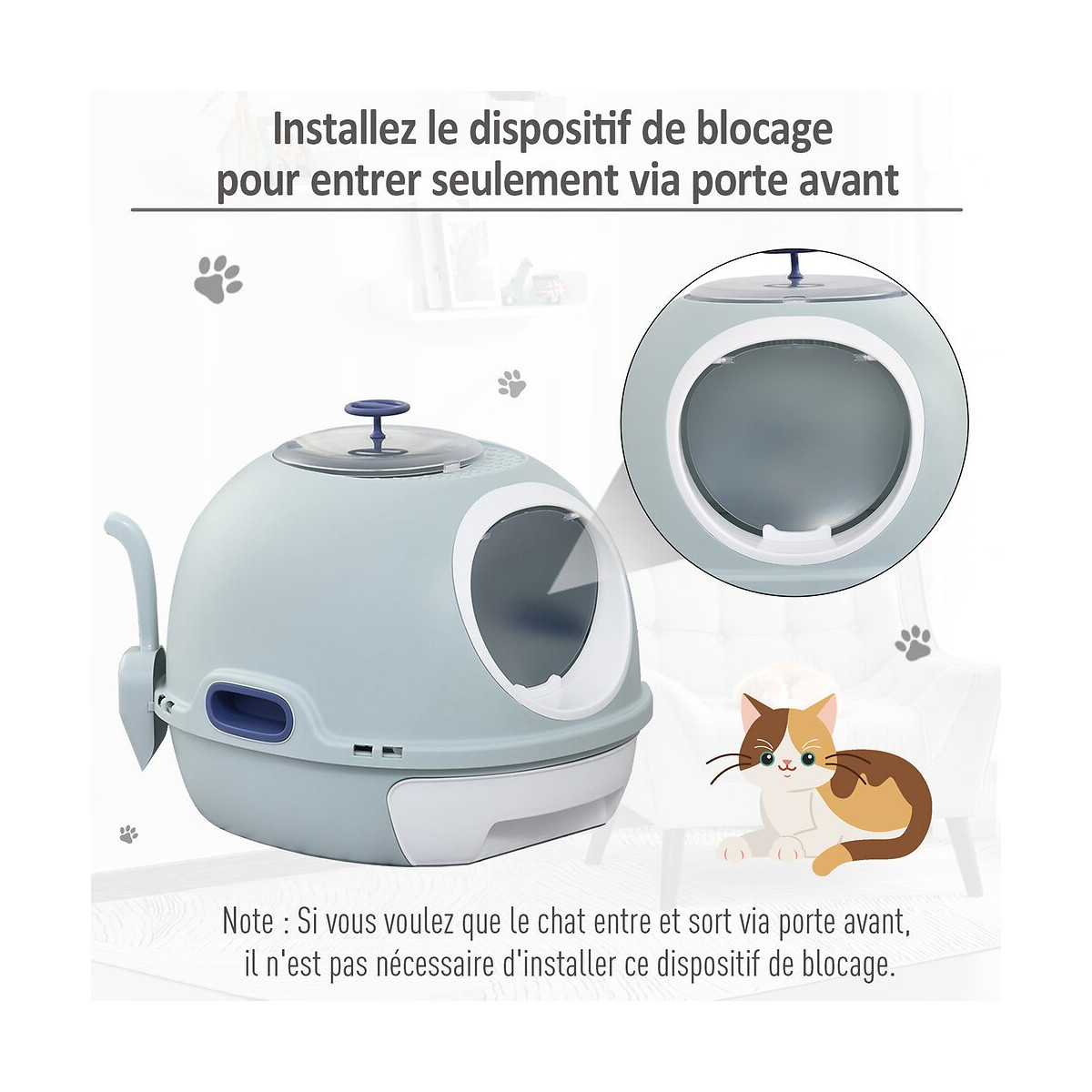 Maison De Toilette Portable Pour Chat Tiroir À Litière Coulissant Porte Battante Lucarne + Pelle Fournis Dim. 47l X 55l X 44h