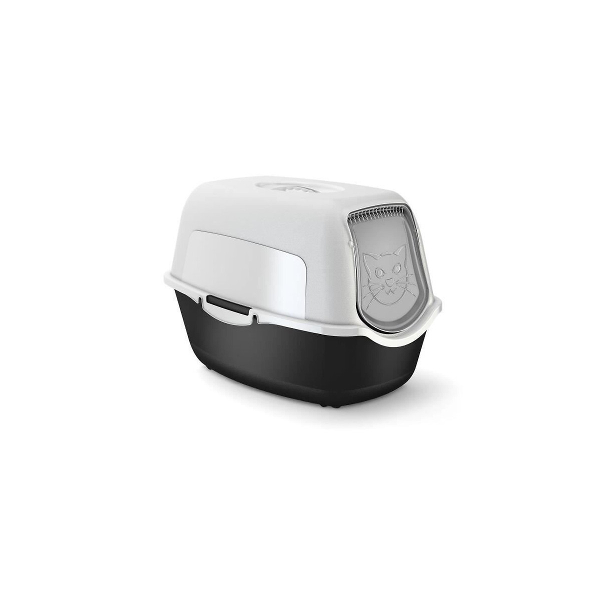 Bac a litiere - En polypropylene - Idéal pour les chats de tous âges et tailles - Conçu pour éviter les odeurs - Une porte de style chatiere et un plateau intérieur qui empeche les fuites - Le couvercle peut etre détaché pour un nettoyage facile - Filtre intégré - Dimensions : L55,5xl40xh38,7 cm - Coloris : noir et gris.Spécifications techniques