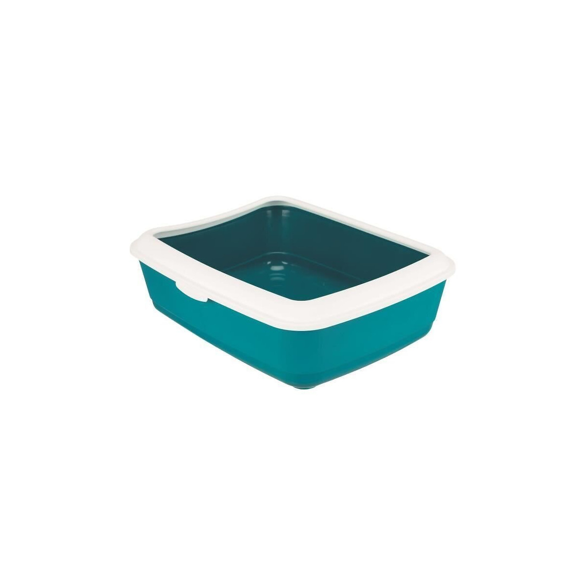 Bac a litiere Classic - 37 x 15 x 47 cm - Avec rebord - Bleu pétrole et blanc - Pour chatSpécifications techniques