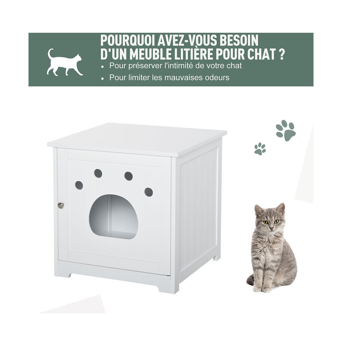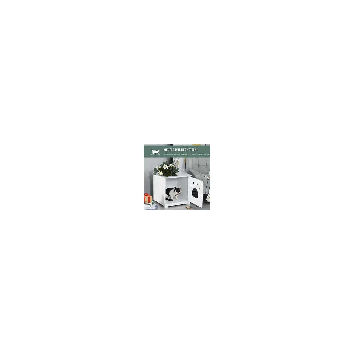 Maison De Toilette Pour Chat Design Porte Entrée Patte Chat 2 Mdf Blanc