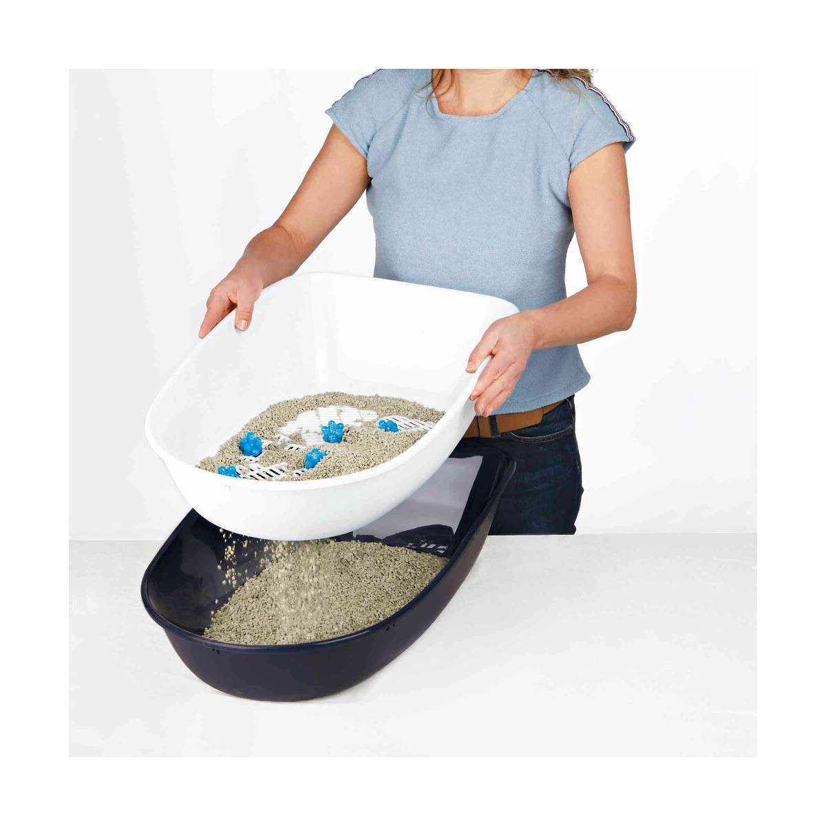 Bac a litière Berto 39 x 22 x 59 cm grise système hygiénique de tri des déchets faible consommation de litière 2 bacs et 1 tamis faciles à utiliser et à nettoyer le bac et le rebord se relient avec la fermeture Easy Click Dimensions: 39 × 22 × 59 cm Hauteur: 22 cm Photo non contractuelle, car il y a plusieurs vendeurs sur une même fiche produit.Spécifications techniques