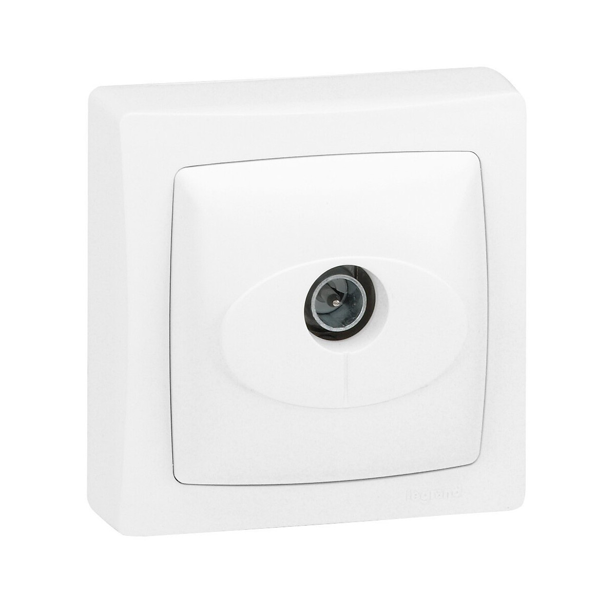 Prise TV simple Appareillage Saillie - blanc. Cette prise TV simple répond au besoin de branchement d'un téléviseur.