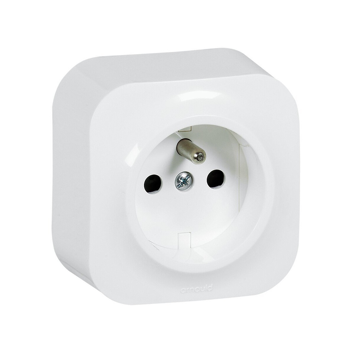 Prise de courant avec terre saillie Profil Eco - 16A - blanc. Un indispensable de votre installation, pour alimenter en toute sécurité tous vos appareils domestiques.