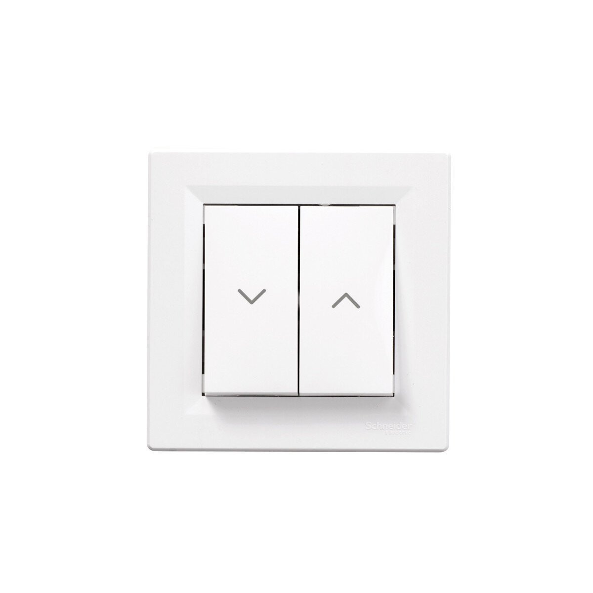 Asfora - Interrupteur volets-roulants blanc 2 boutons montée/descente - Blanc Interrrupteur volet roulant encastrable complet asfora ? Série asfora de schneider electric ? Commandes de volets, vmc et chauffage ? Interrupteur ''montée - descente'' pour commande directe du mo