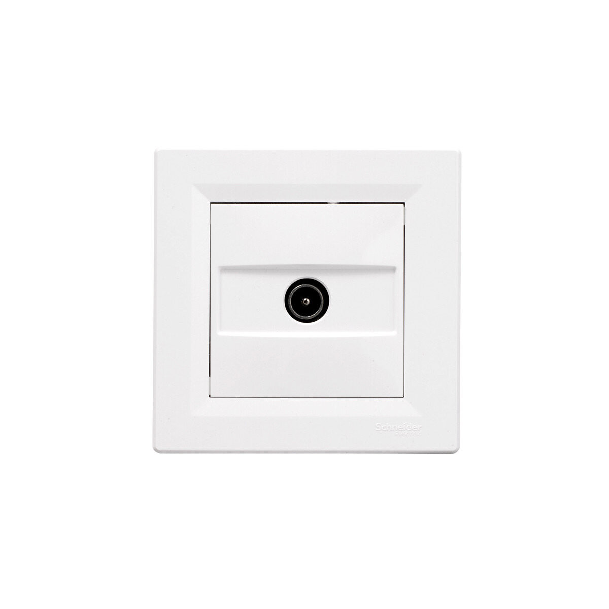 Prise tv simple encastrable complet asfora ? Série asfora de schneider electric ? Compatible numérique et hertzien ? Prise tv mâle ø9,5 mm