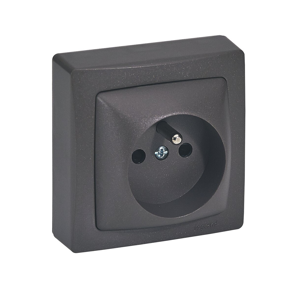 Prise de courant avec terre Appareillage Saillie bornes auto - Marron. Un indispensable de votre installation, pour alimenter en toute sécurité tous vos appareils domestiques. Livrée avec cadre pour pose en saillie - 1 référence = 1 appareil complet prêt à installer.