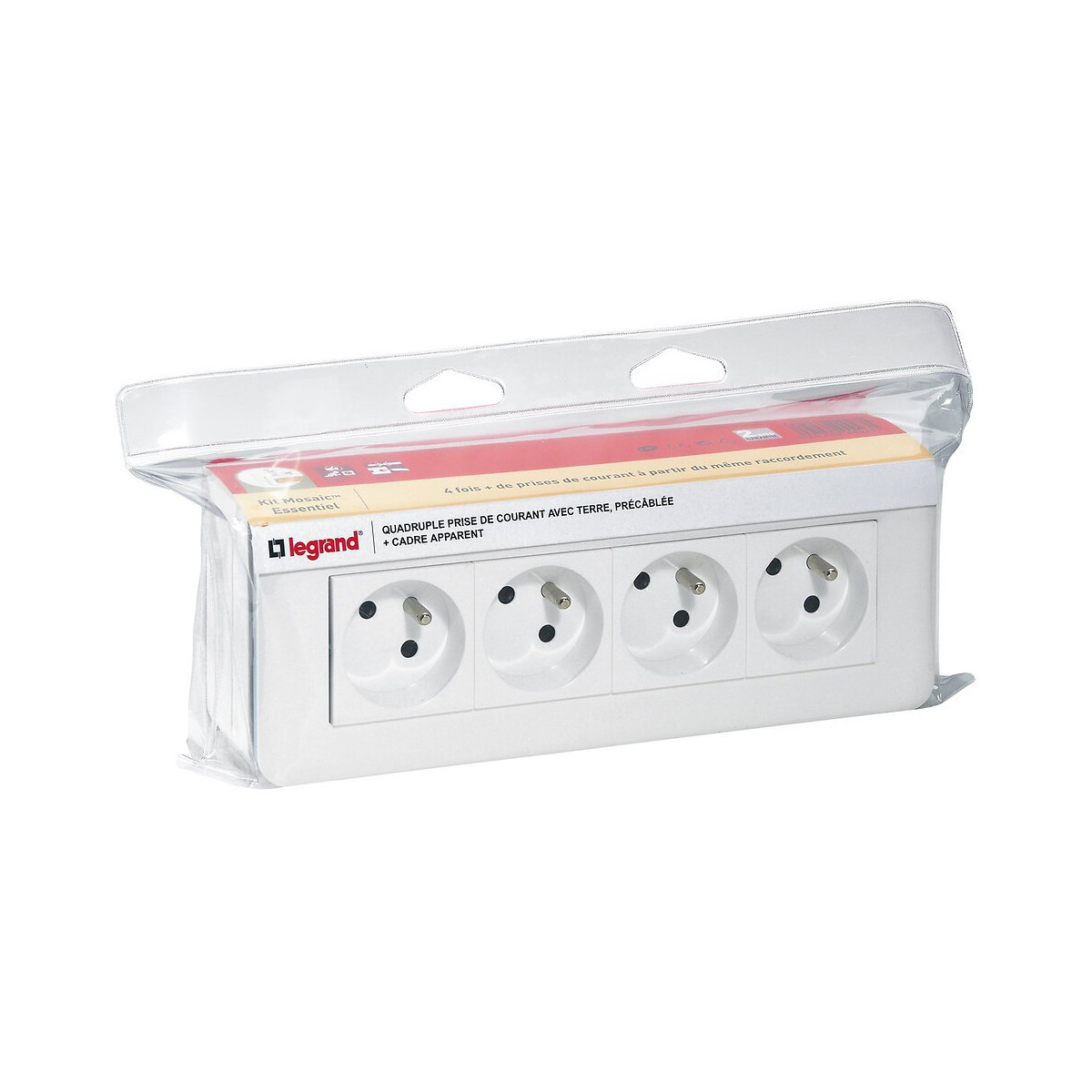 Kit essentiel Mosaic - 4 prises de courant + support + cadre saillie LEGRAND