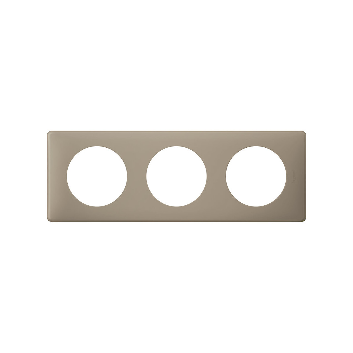 Plaque Céliane - Poudré Grès - 3 postes. Les plaques Céliane permettent de composer des interrupteurs et prises au gré de ses envies, en jouant sur les matières – métal, verre, bois, cuir – et les couleurs.Spécifications techniques