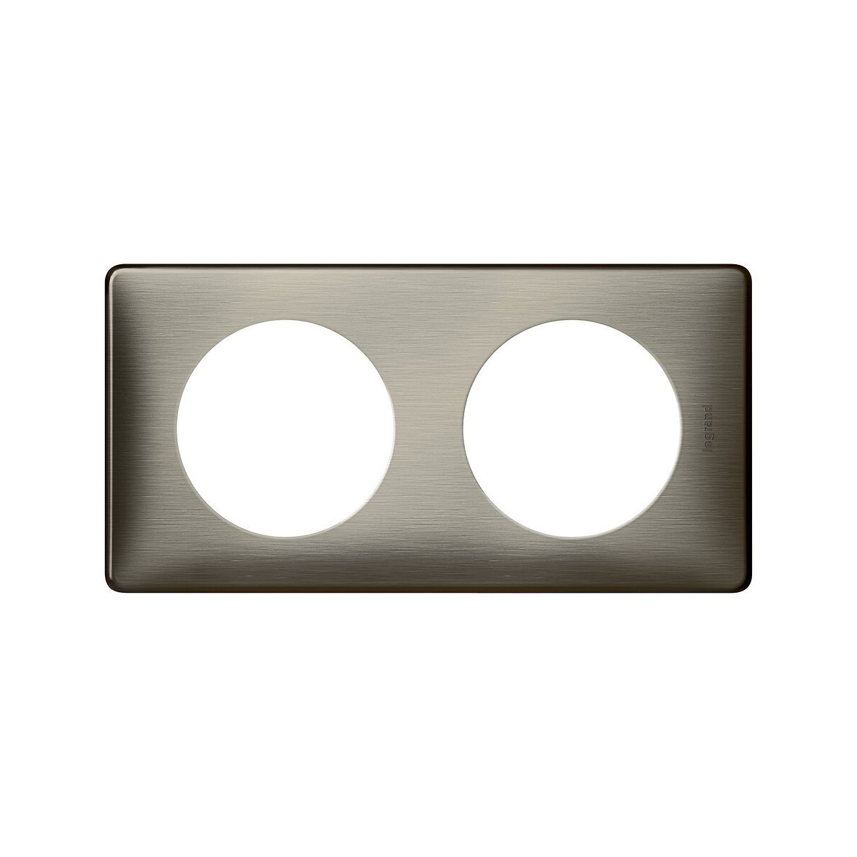 Plaque Céliane - Métal Tungstène - 2 postes. Les plaques Céliane permettent de composer des interrupteurs et prises au gré de ses envies, en jouant sur les matières – métal, verre, bois, cuir – et les couleurs.Spécifications techniques
